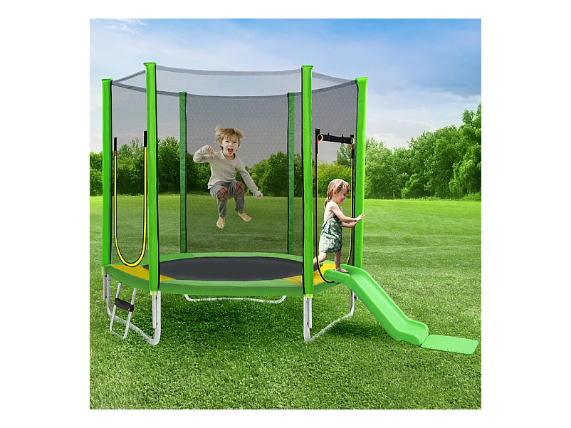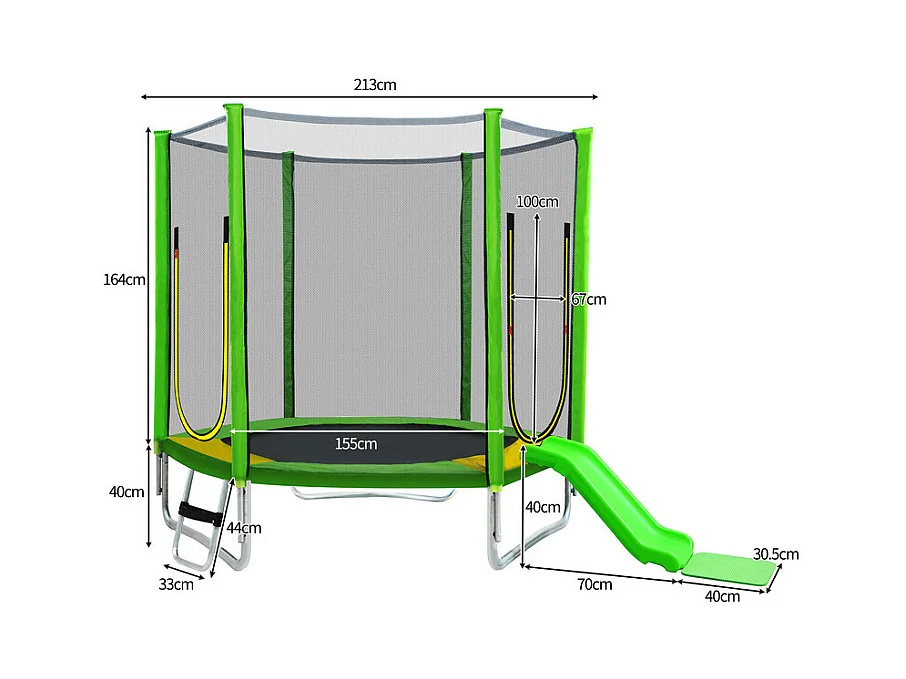 Trampoline Ø213 cm - avec toboggan, escalier, 2 porte et filet de sécurité - charge max 100kg - Certification GS