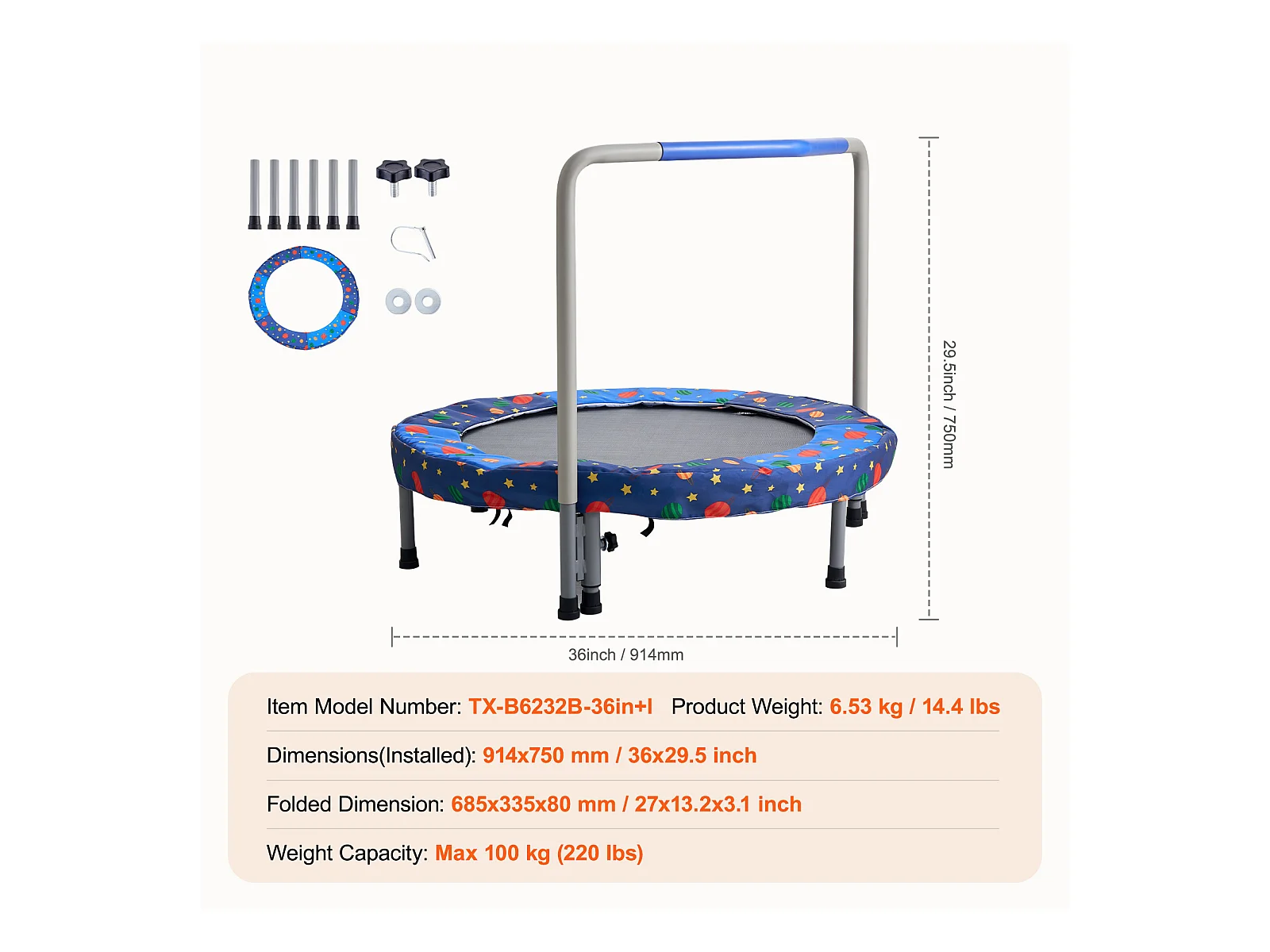 Trampoline SucceBuy Trampoline 91.5cm pour Enfants, Mini Trampoline Pliable pour Tout-Petits pour une Utilisation Intérieure et Extérieure