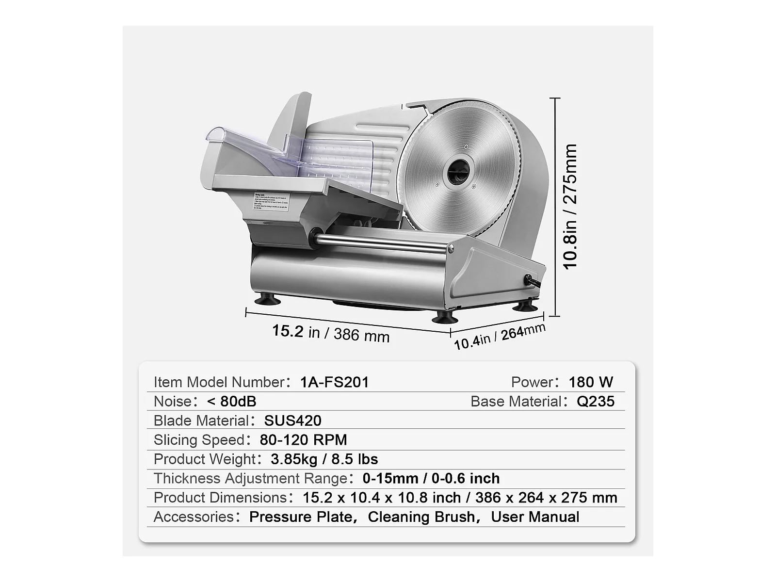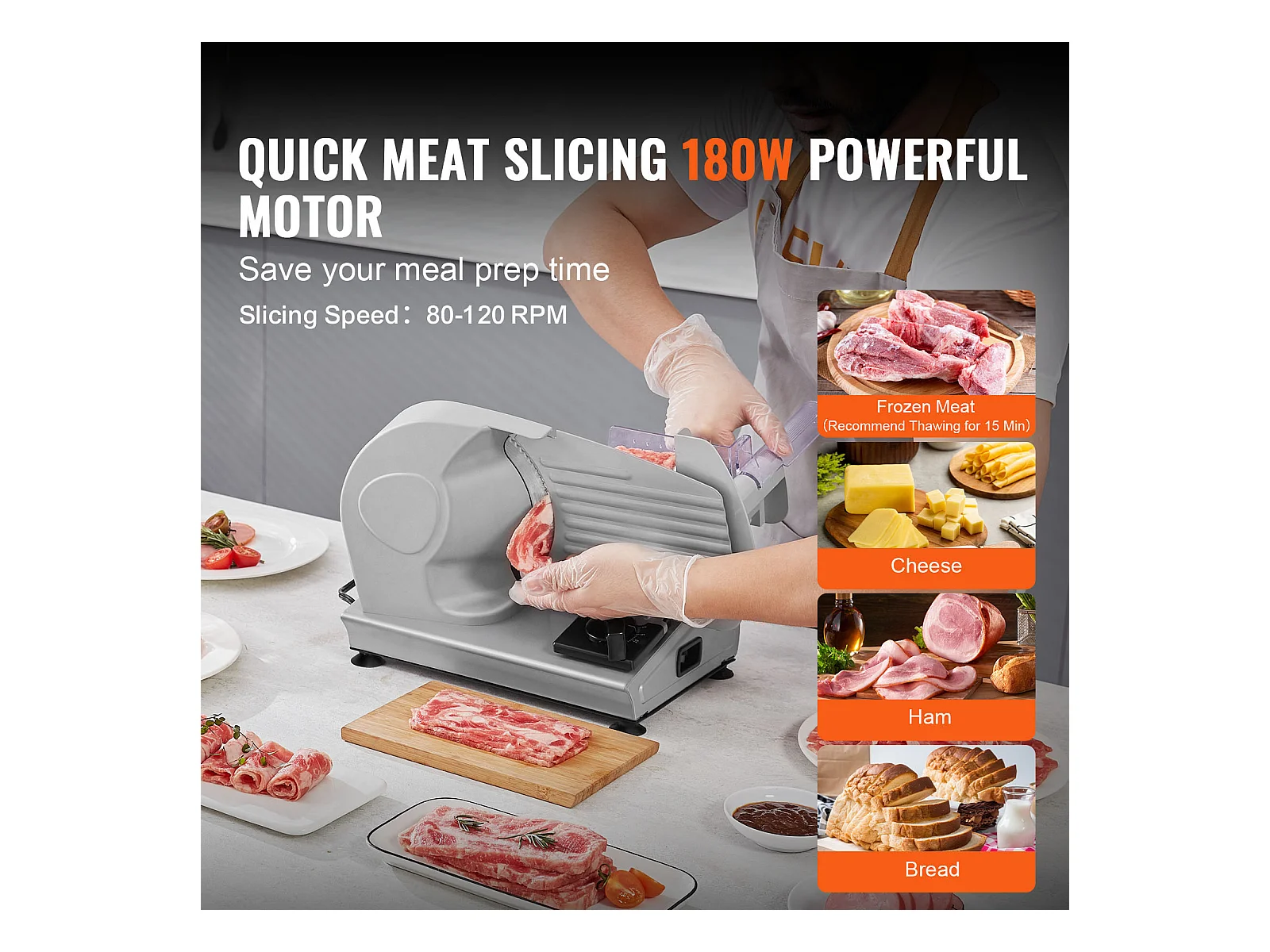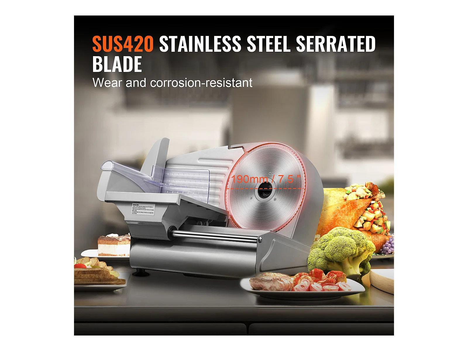 Trancheuse à Viande Électrique SucceBuy 180 W, Lame en Acier Inoxydable SUS420 de 19.05CM