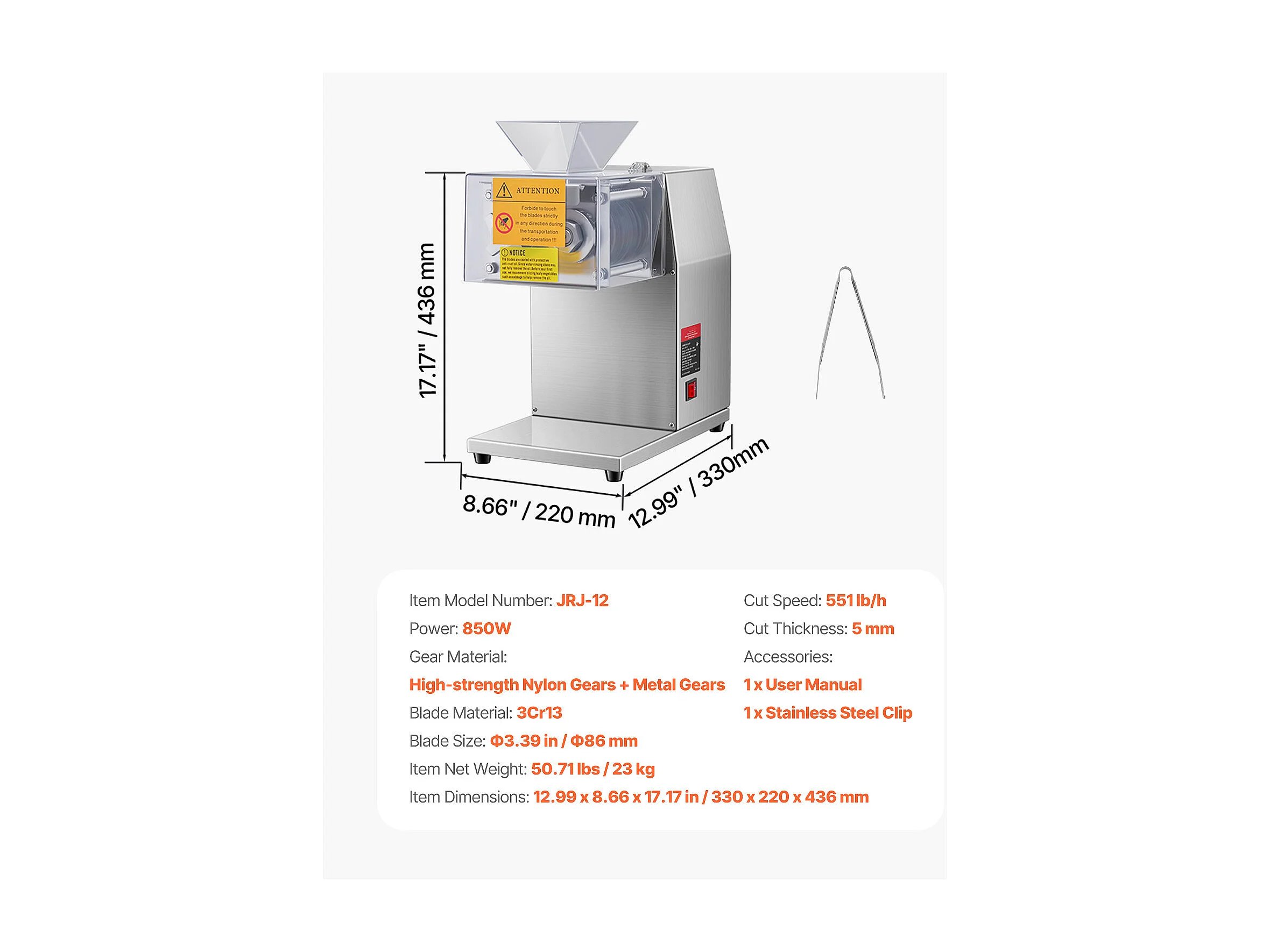 Trancheuse à Viande Électrique SucceBuy 340 W avec Lame SUS420 de 25.4 CM