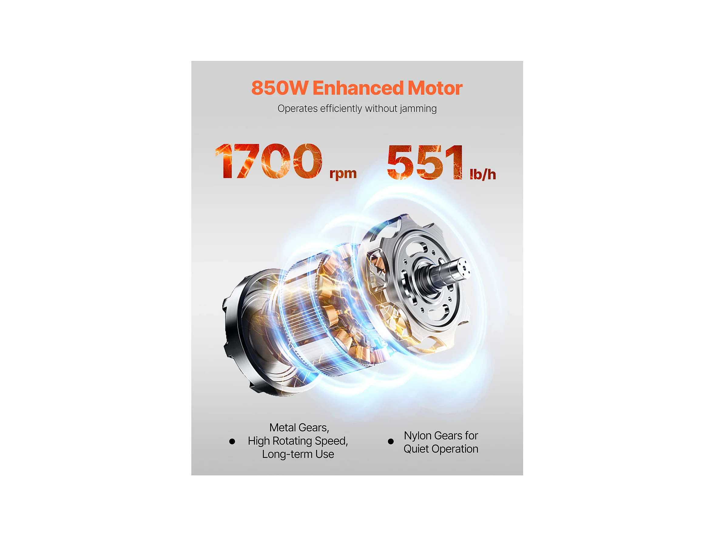 Hachoir à Viande SucceBuy Électrique Robuste, Capacité 1100 W et Poussoir à Saucisses, 450KG/h