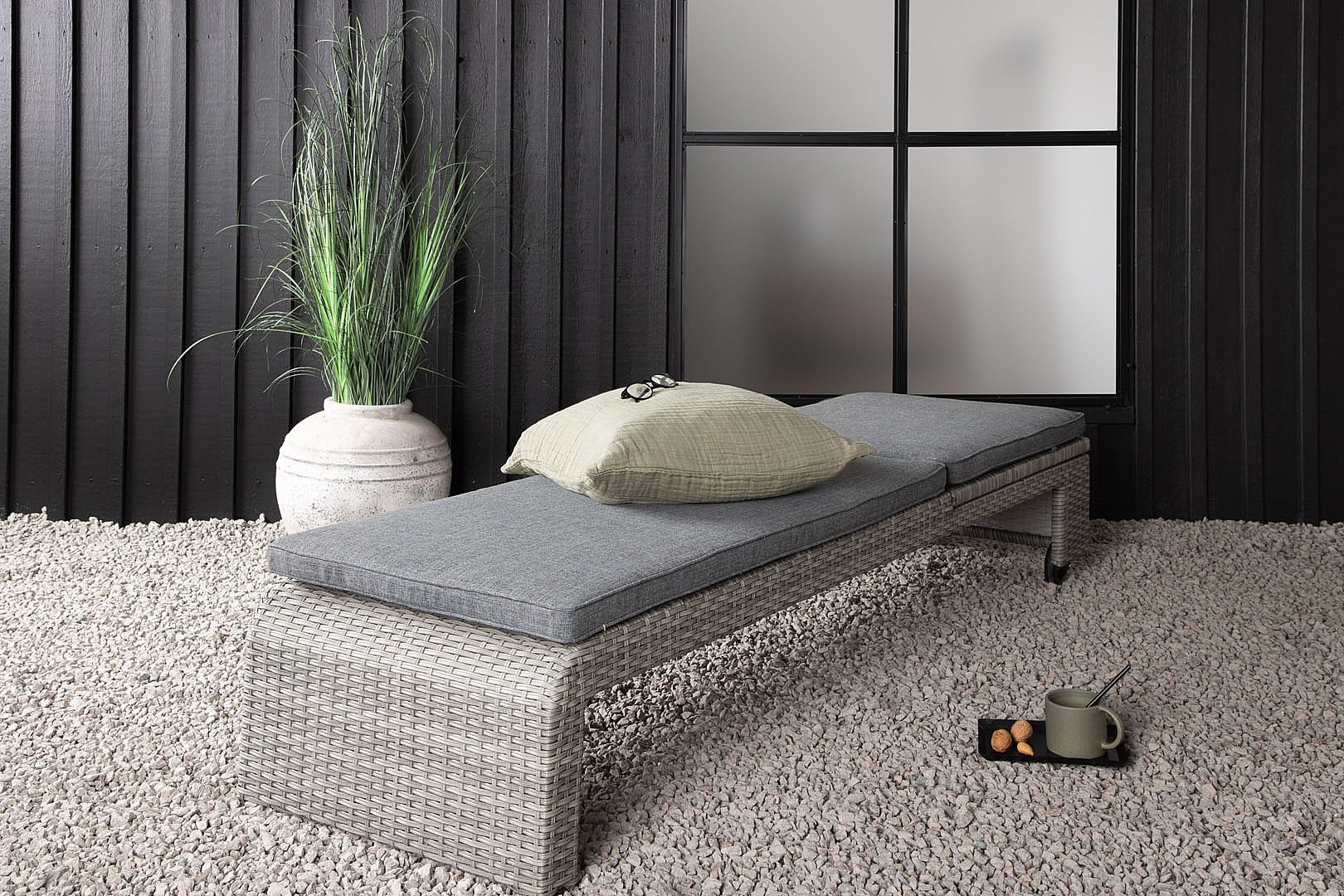 Bain de soleil avec coussin gris clair 60x205x73 cm poly rotin FR16537