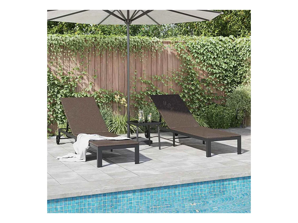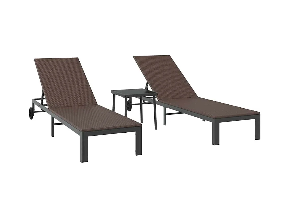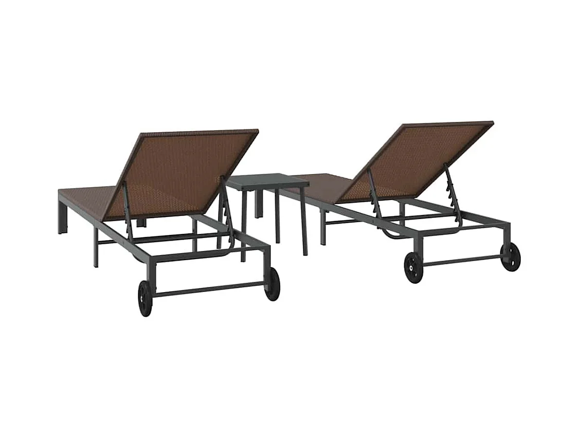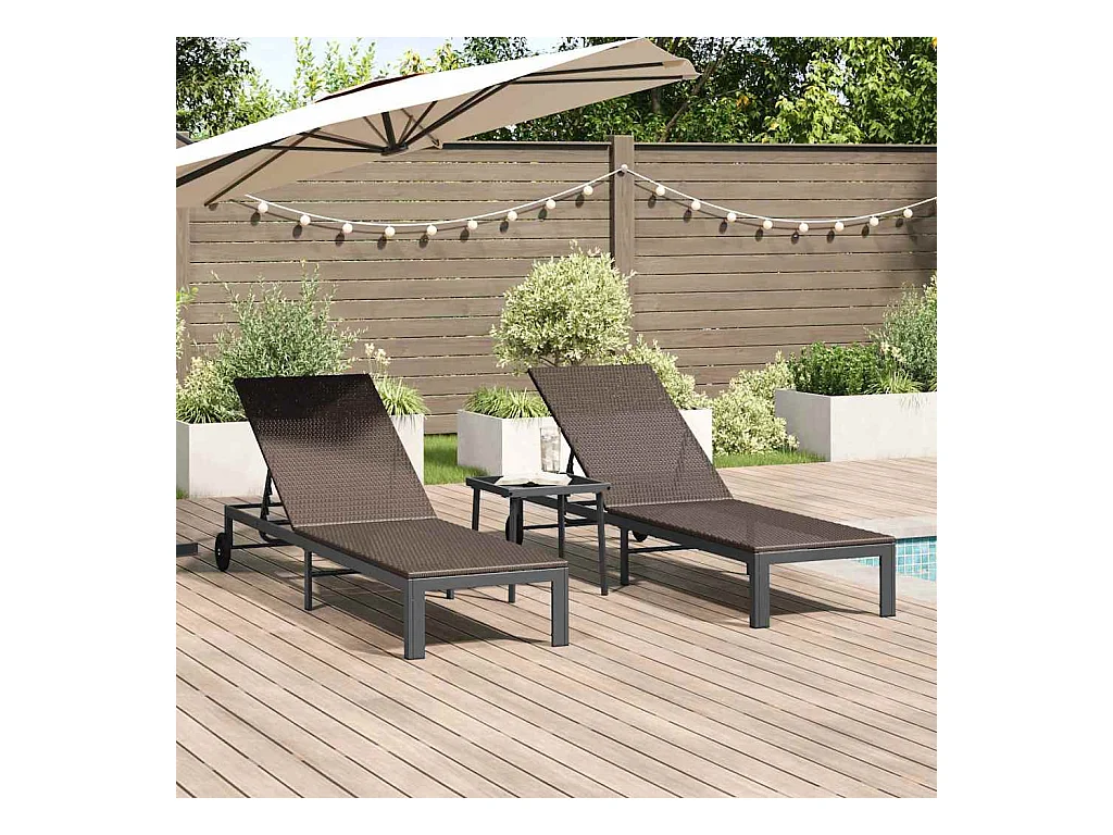 Chaises longues lot de 2 avec table bois massif d'acacia