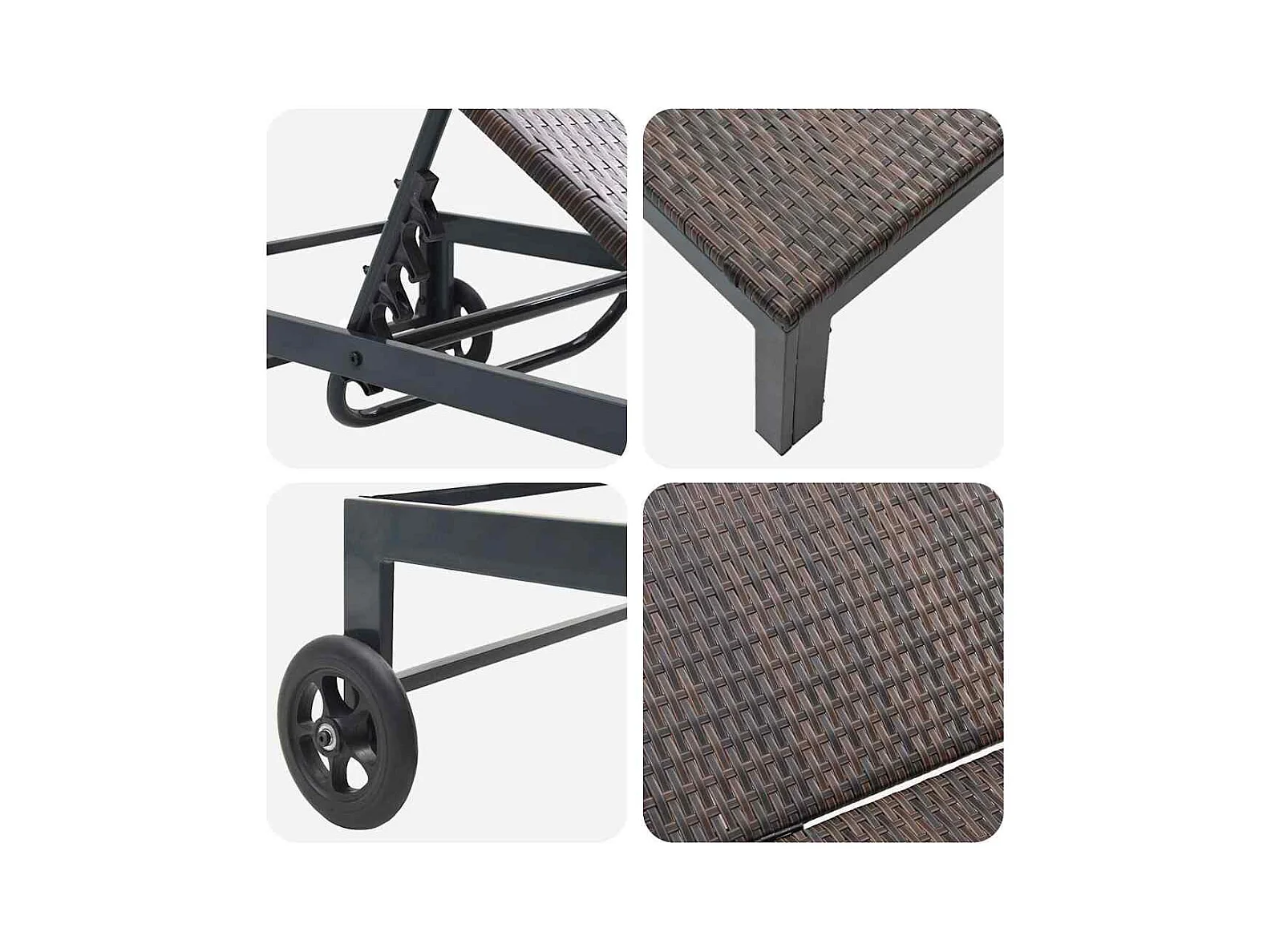 Chaise longue avec coussin marron 63x200x81 cm en poly rotin