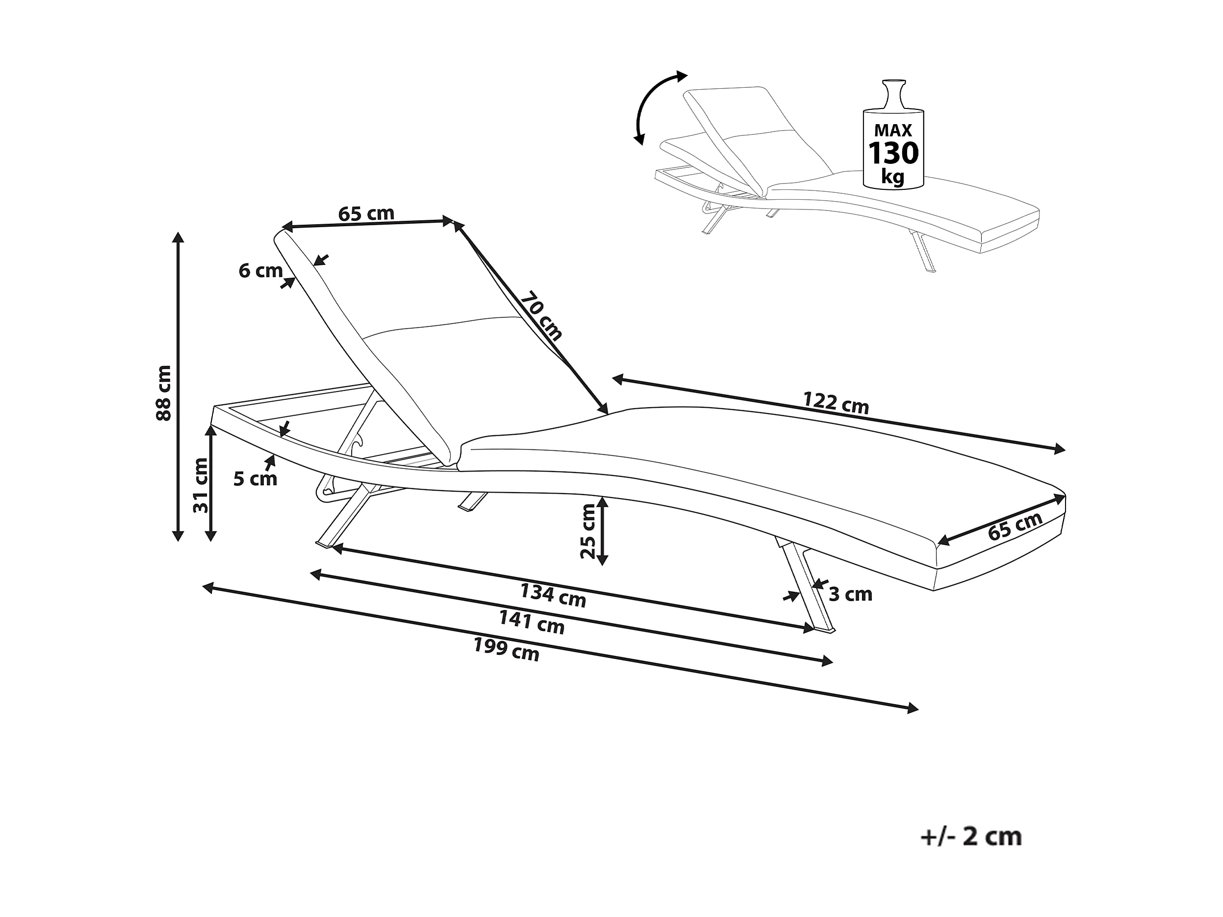 Transat avec coussin AMELIA Métal Beige clair