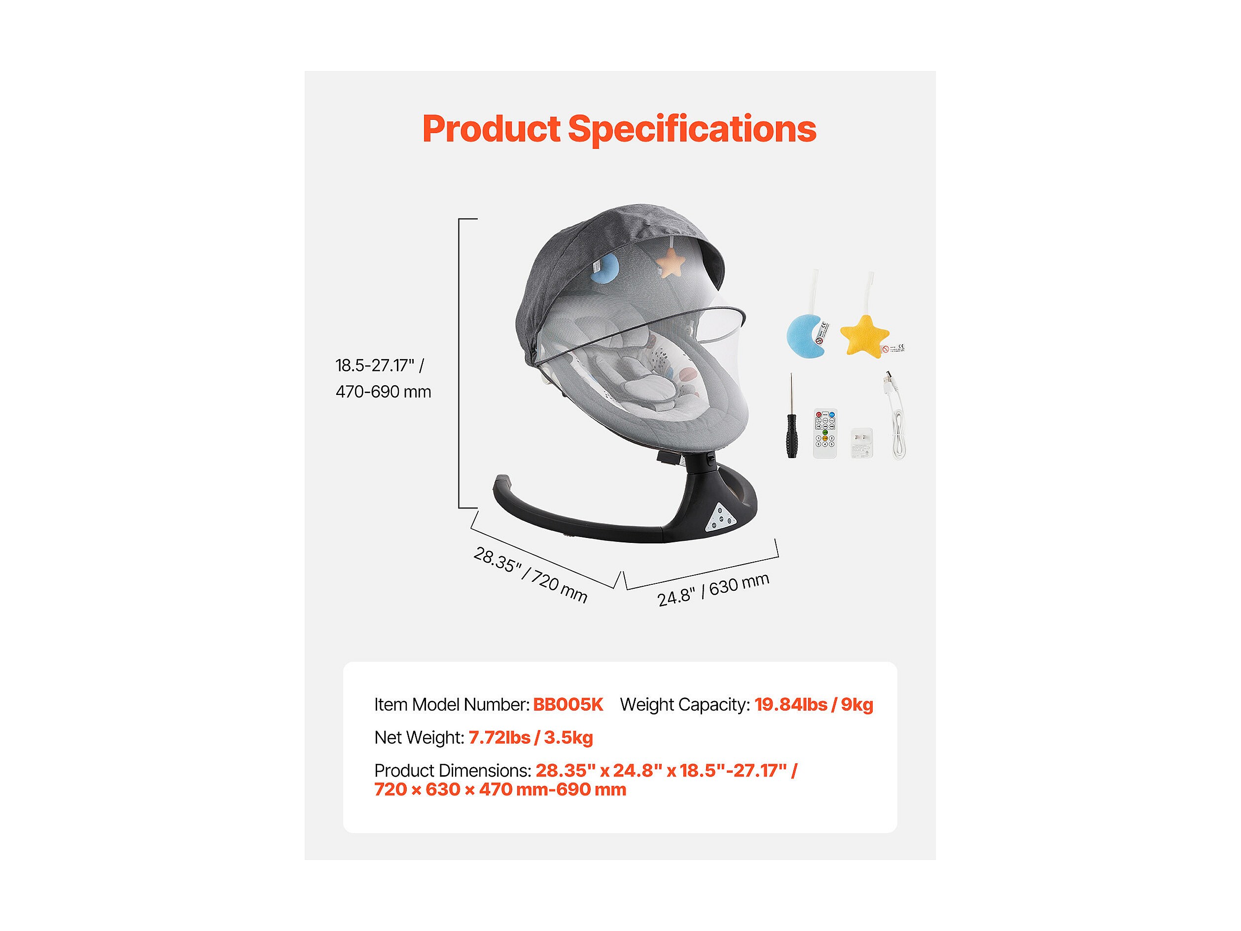 Transat Bébé Électrique, SucceBuy Balançoire pour Bébé pour Nourrissons 5 Vitesses 3 Positions de Siège Télécommande Bluetooth