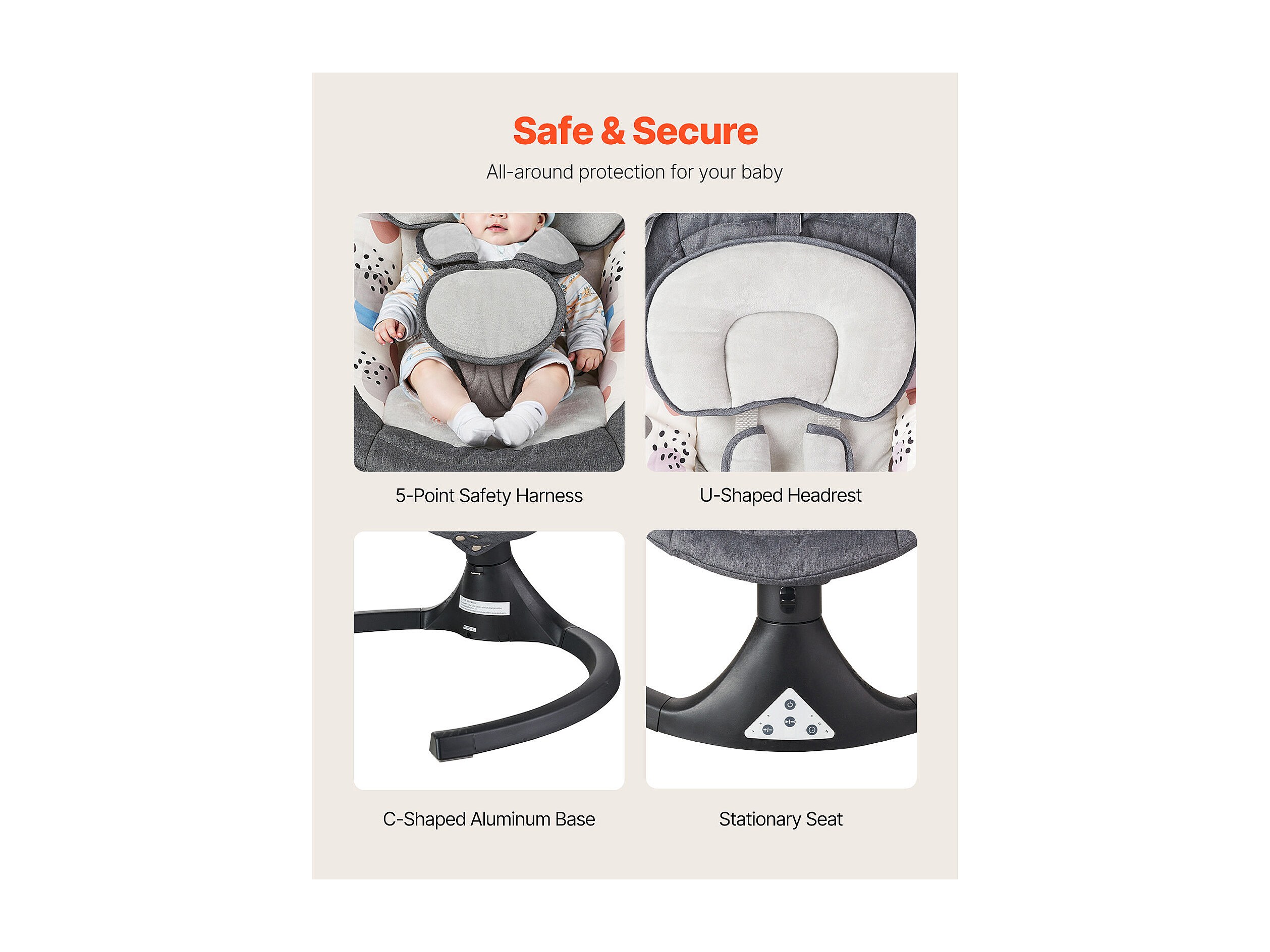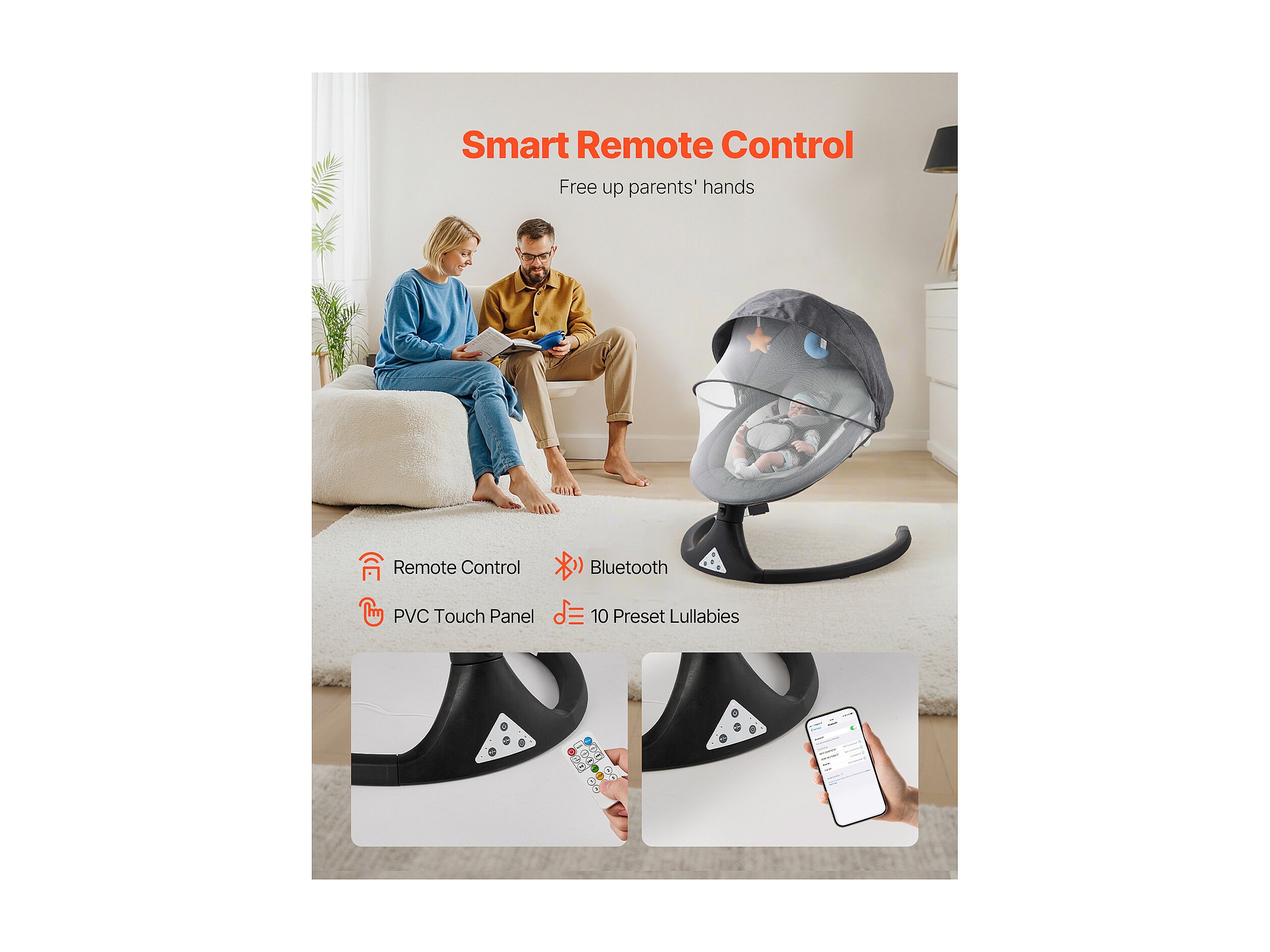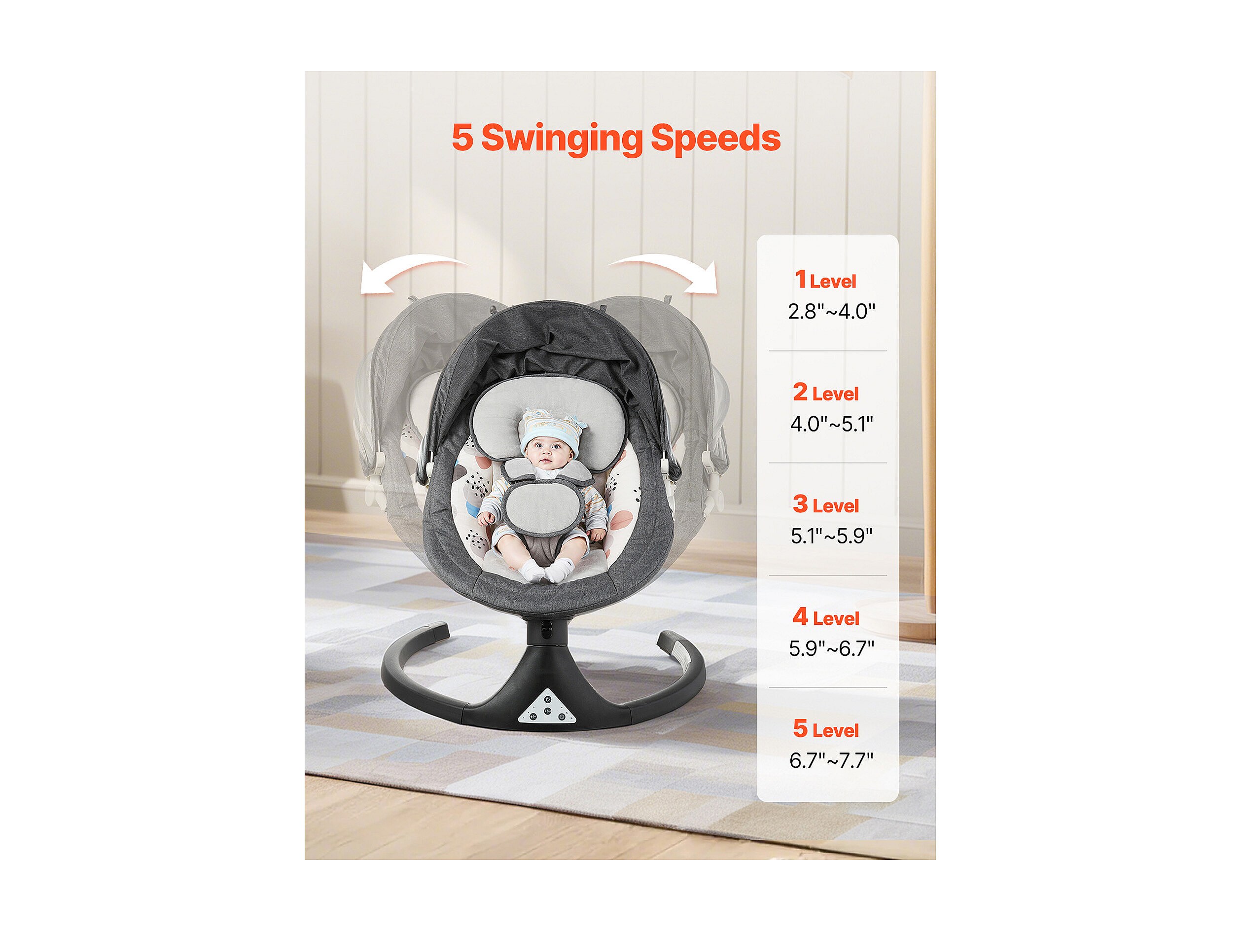Transat Bébé Électrique, SucceBuy Balançoire pour Bébé pour Nourrissons 5 Vitesses Télécommande Bluetooth Berceuses Coussin