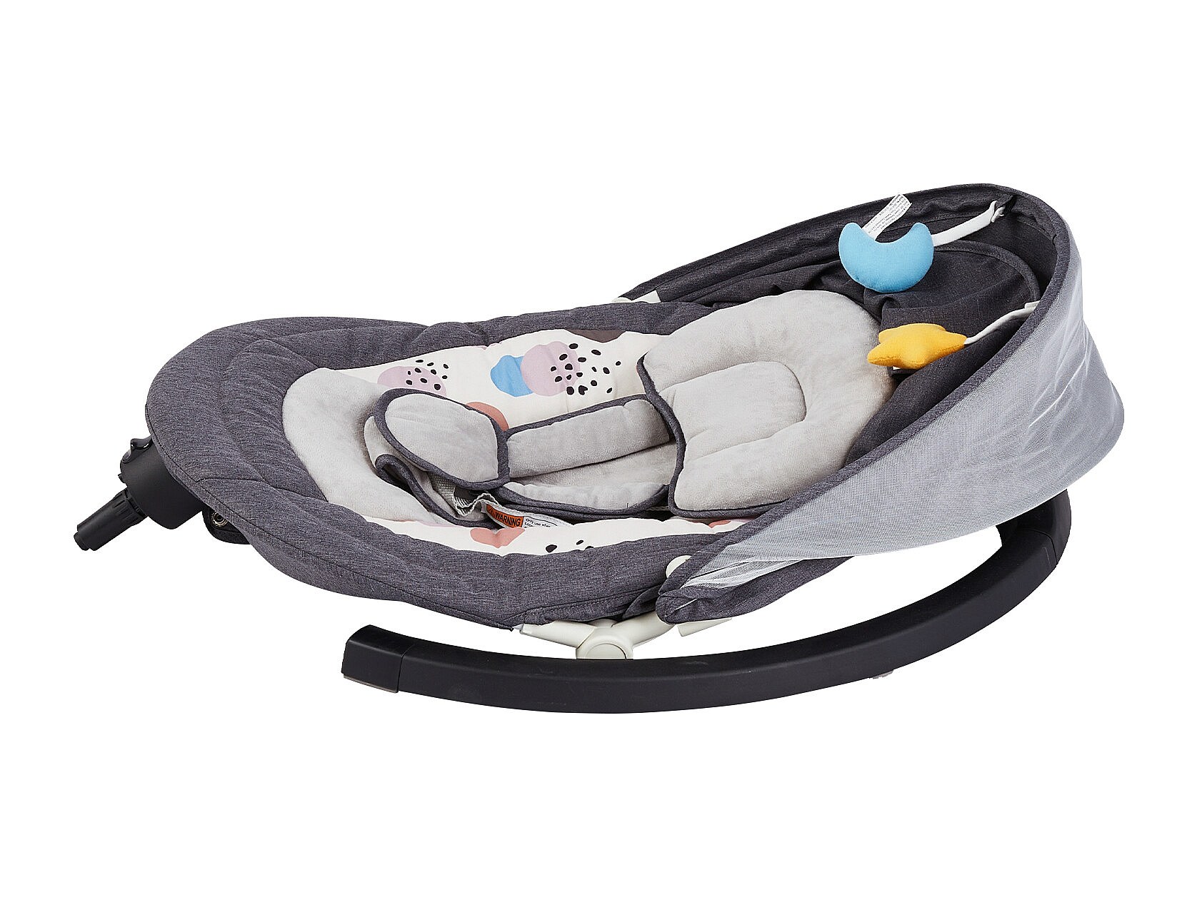 Transat Bébé Électrique avec 5 Amplitudes/Balancelle Bébé 0-6 Mois Télécommandé avec Musique, 2 Jouets, Harnais à 5 Points, Minuterie 15-60 Min, Charge 9KG-Gris