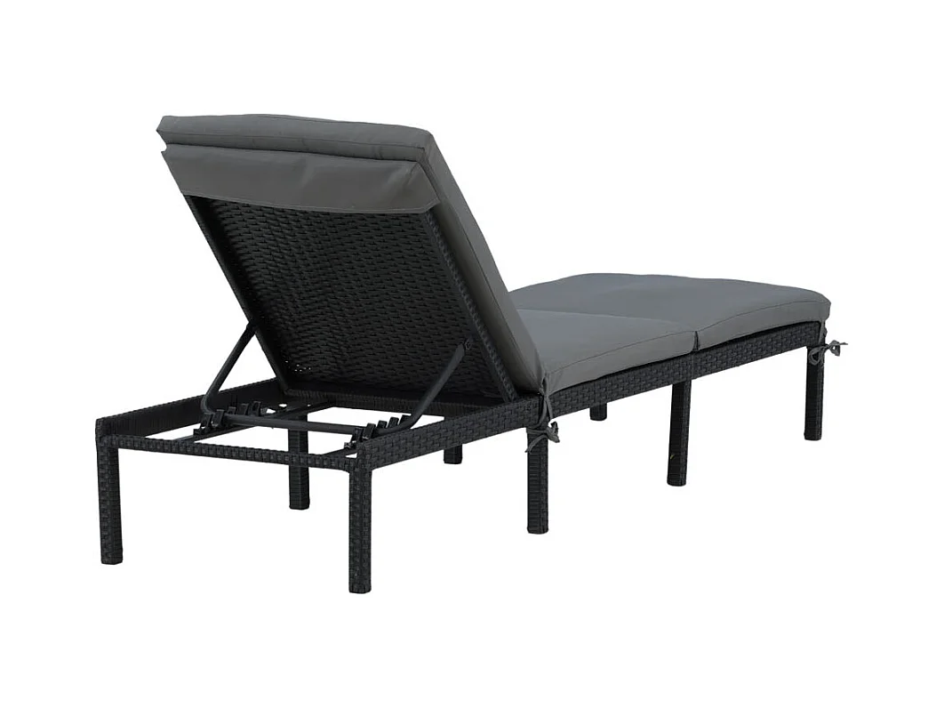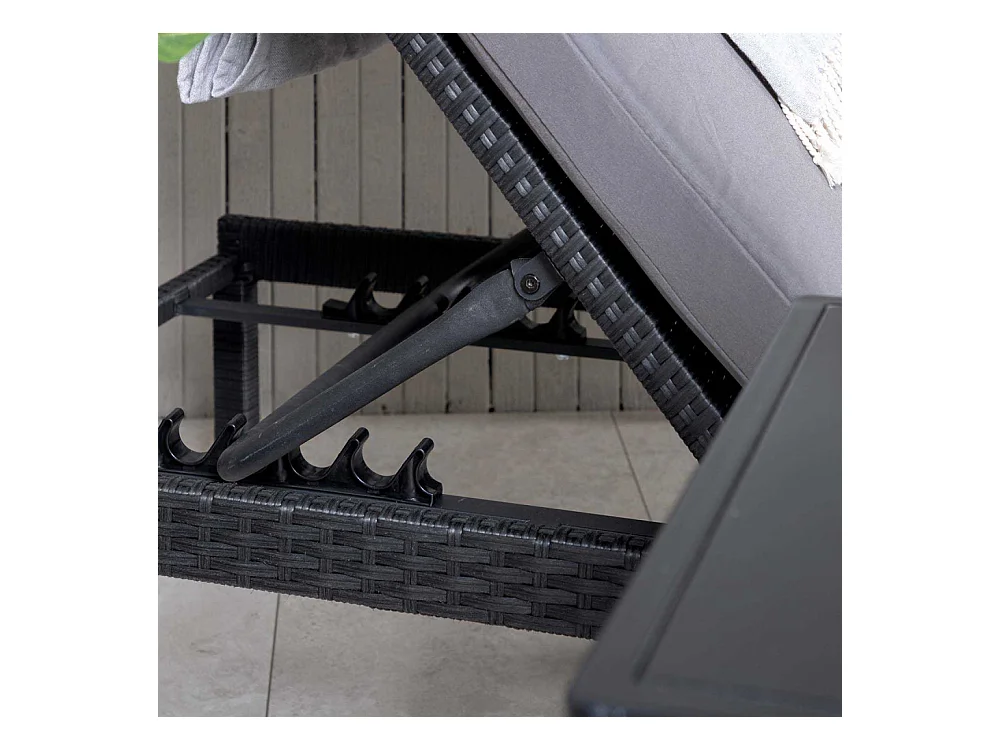 Chaise longue avec coussin blanc crème Résine tressée Noir