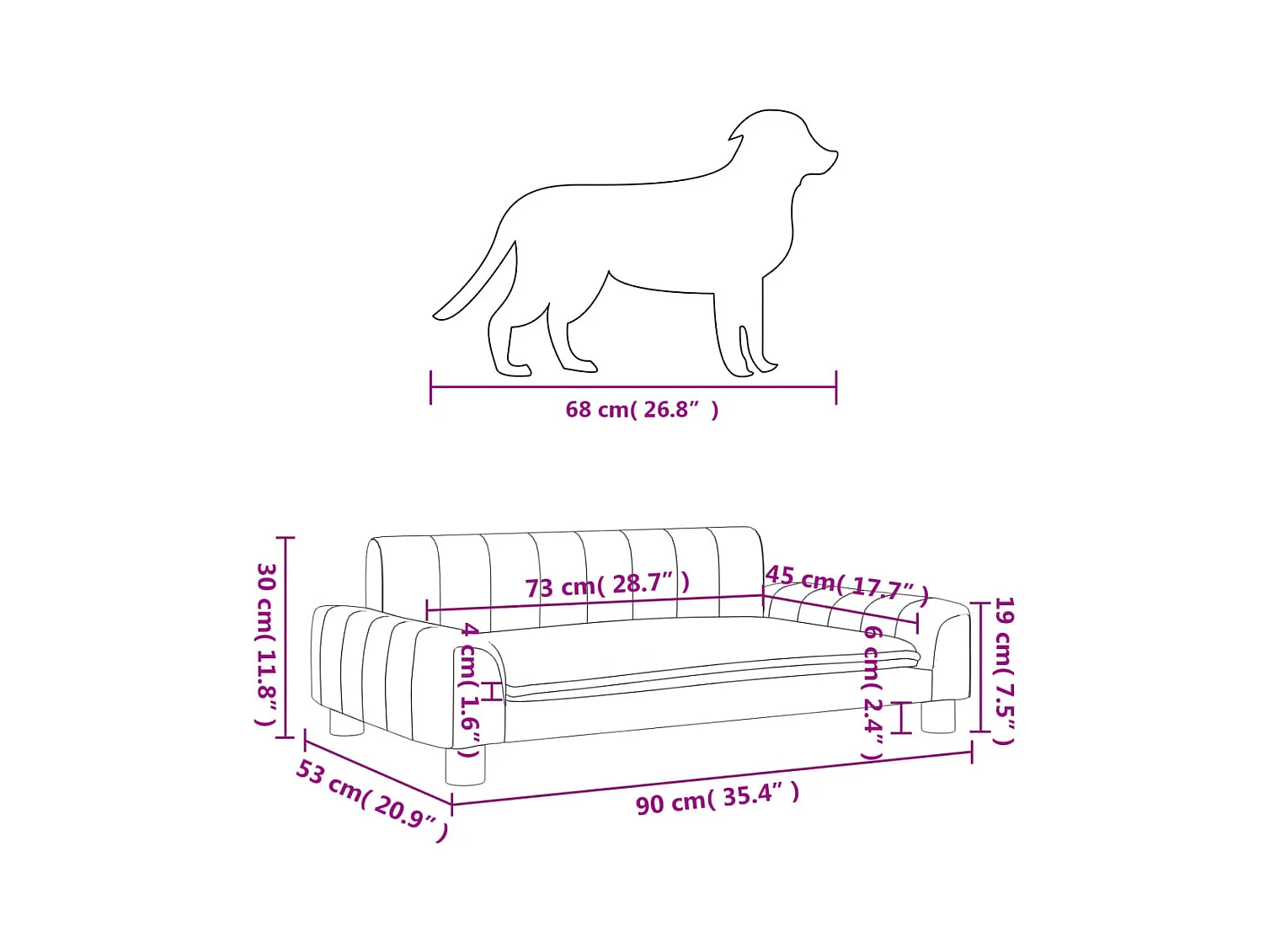 Fien Lit pour cen noir 70x45x33 cm velours