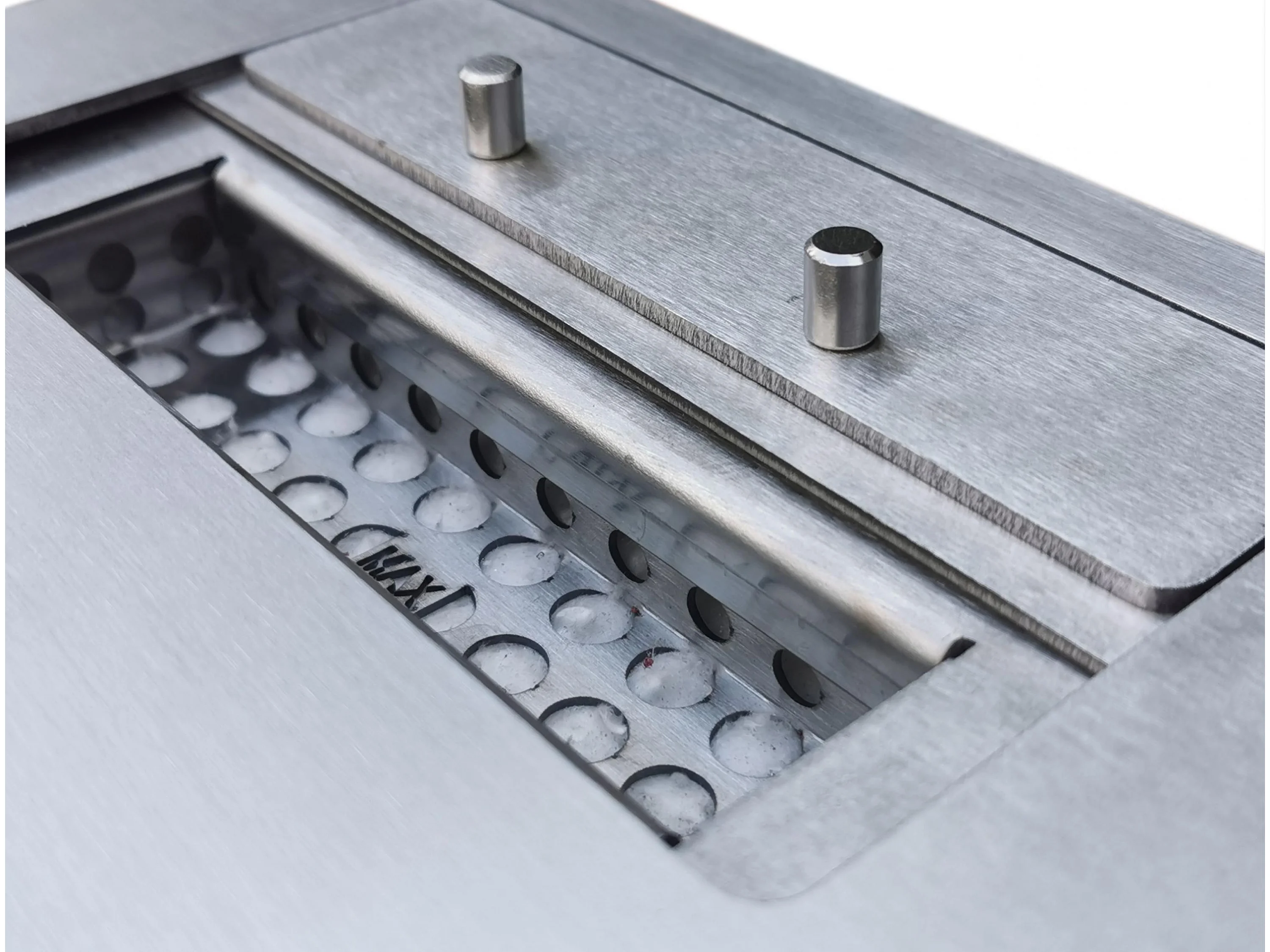 Très grande cheminée murale à l'éthanol en acier et verre trempé