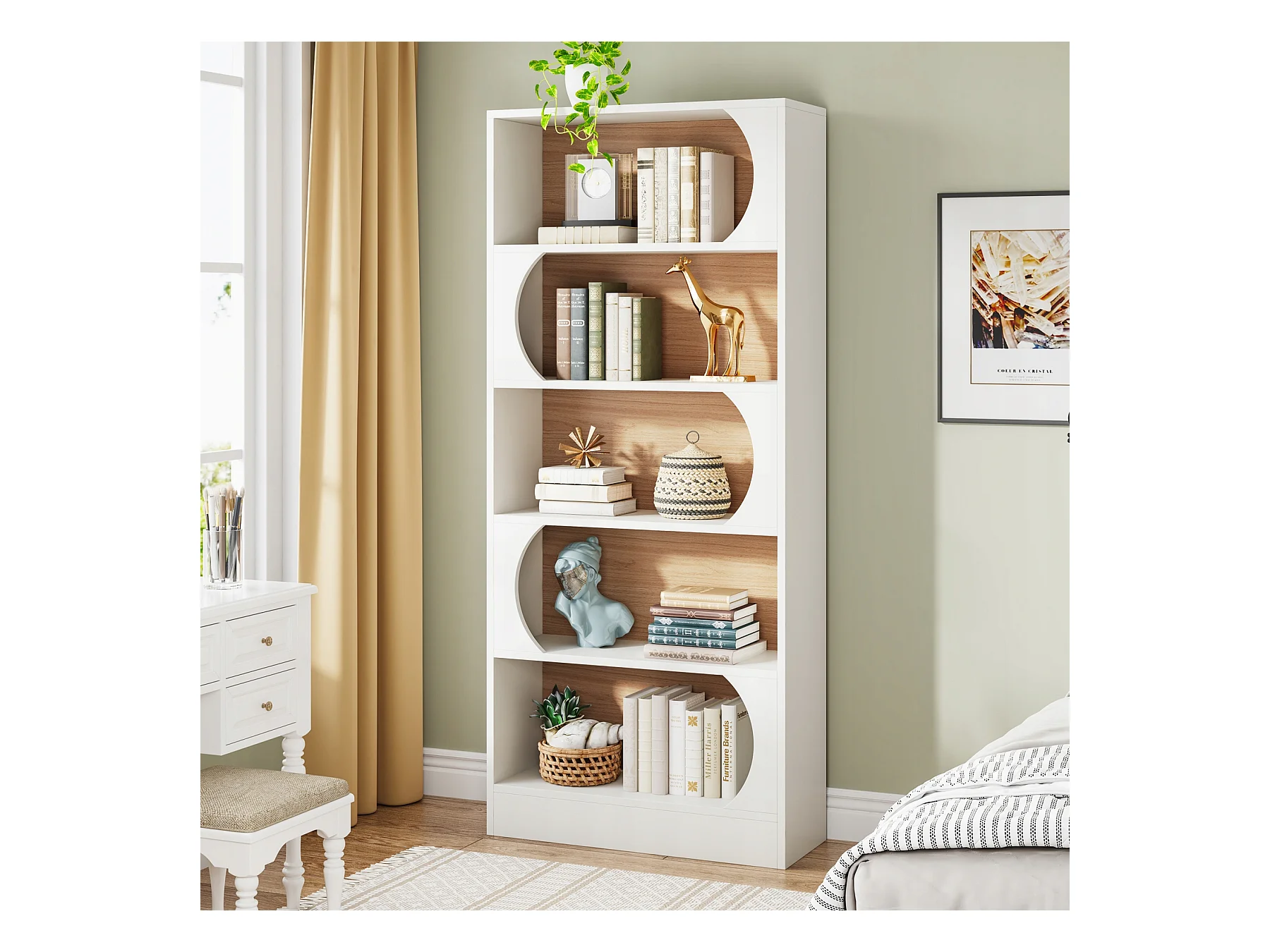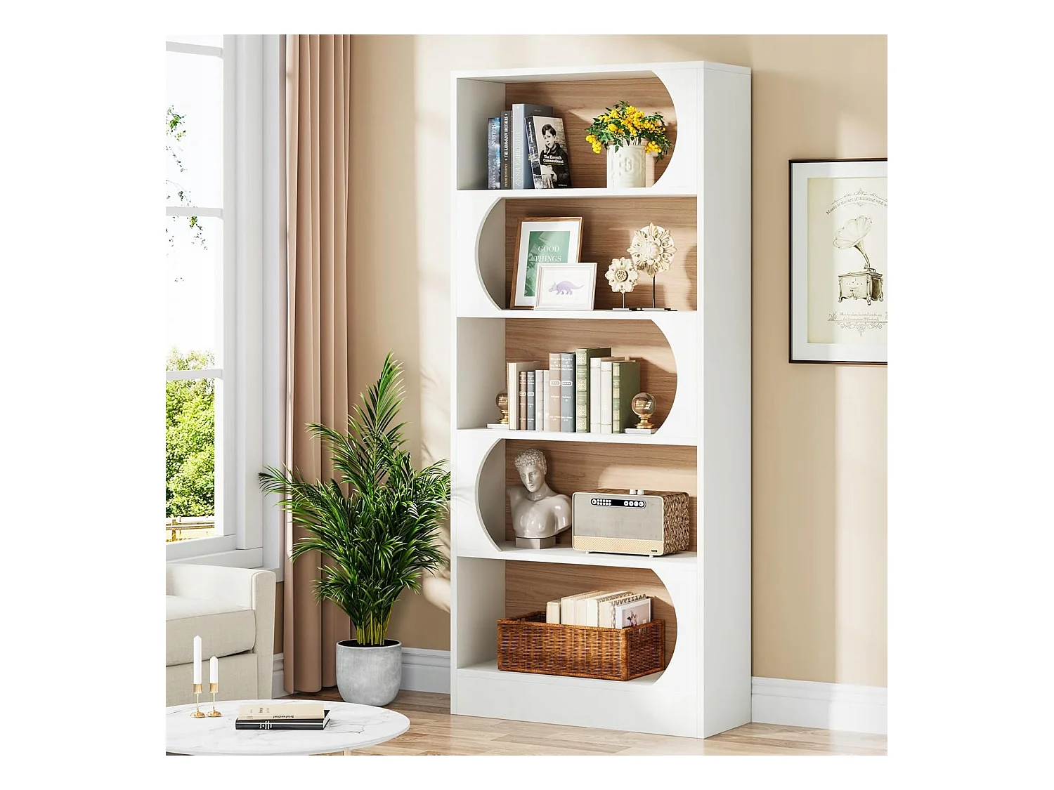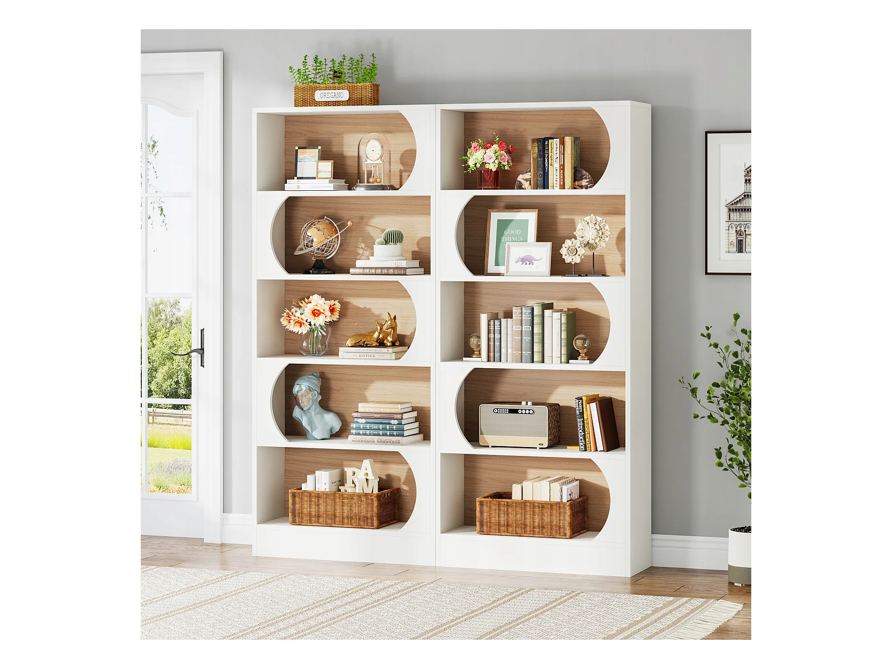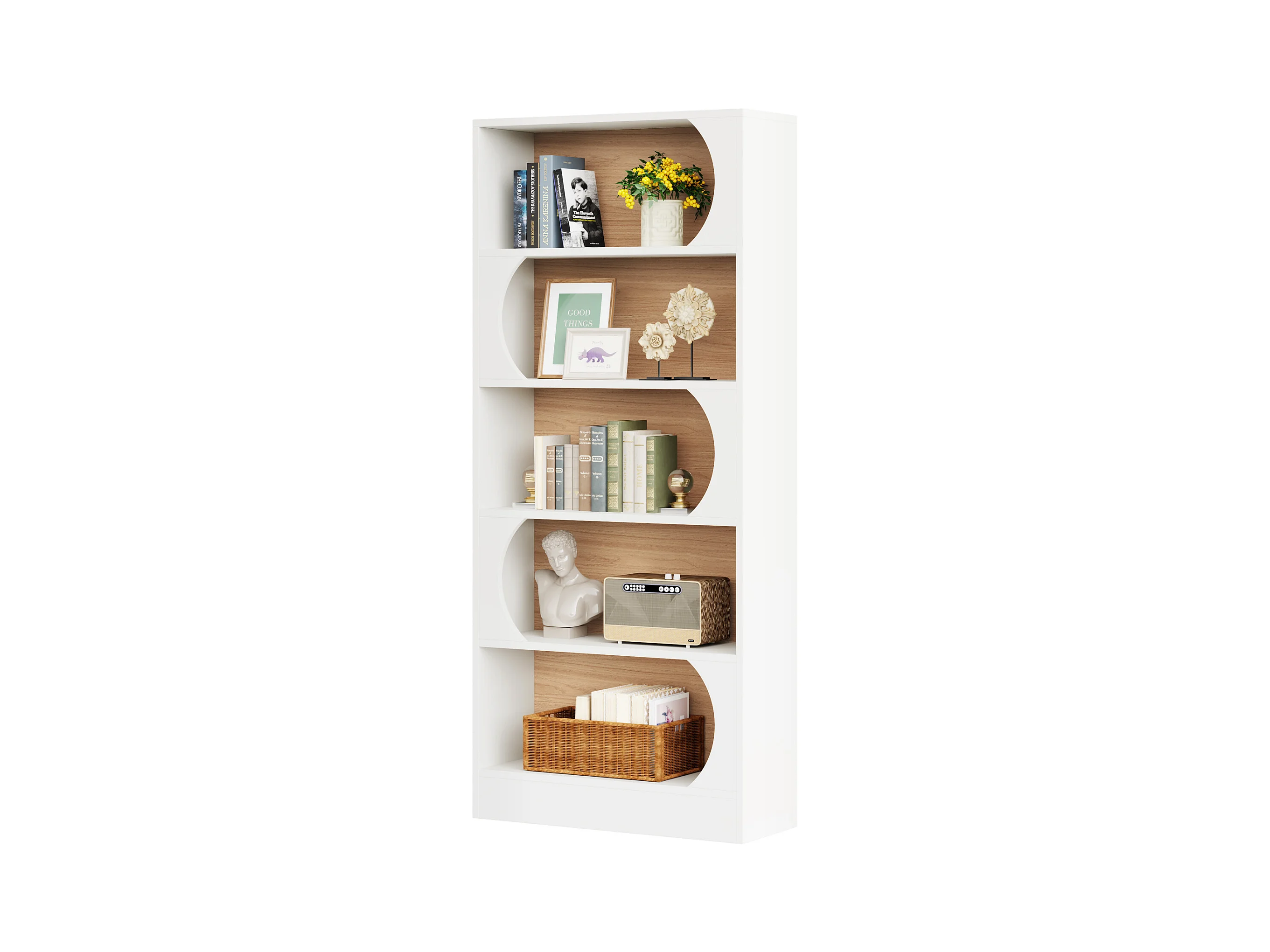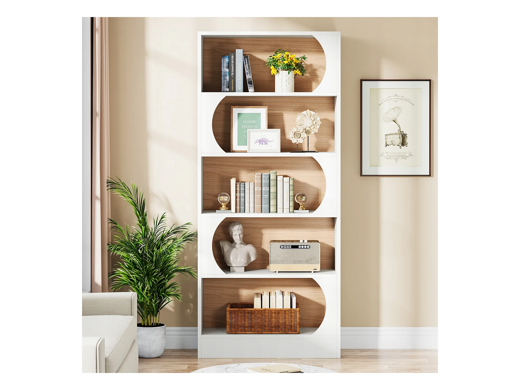 Tribesigns Bibliothèque à 5 Niveaux, 180CM Étagères de Rangement, Grande Bibliothèque Cubique Ouverte, Étagères d'Affichage en Bois pour Chambre à Coucher, Salon, Bureau, Blanc et Noyer