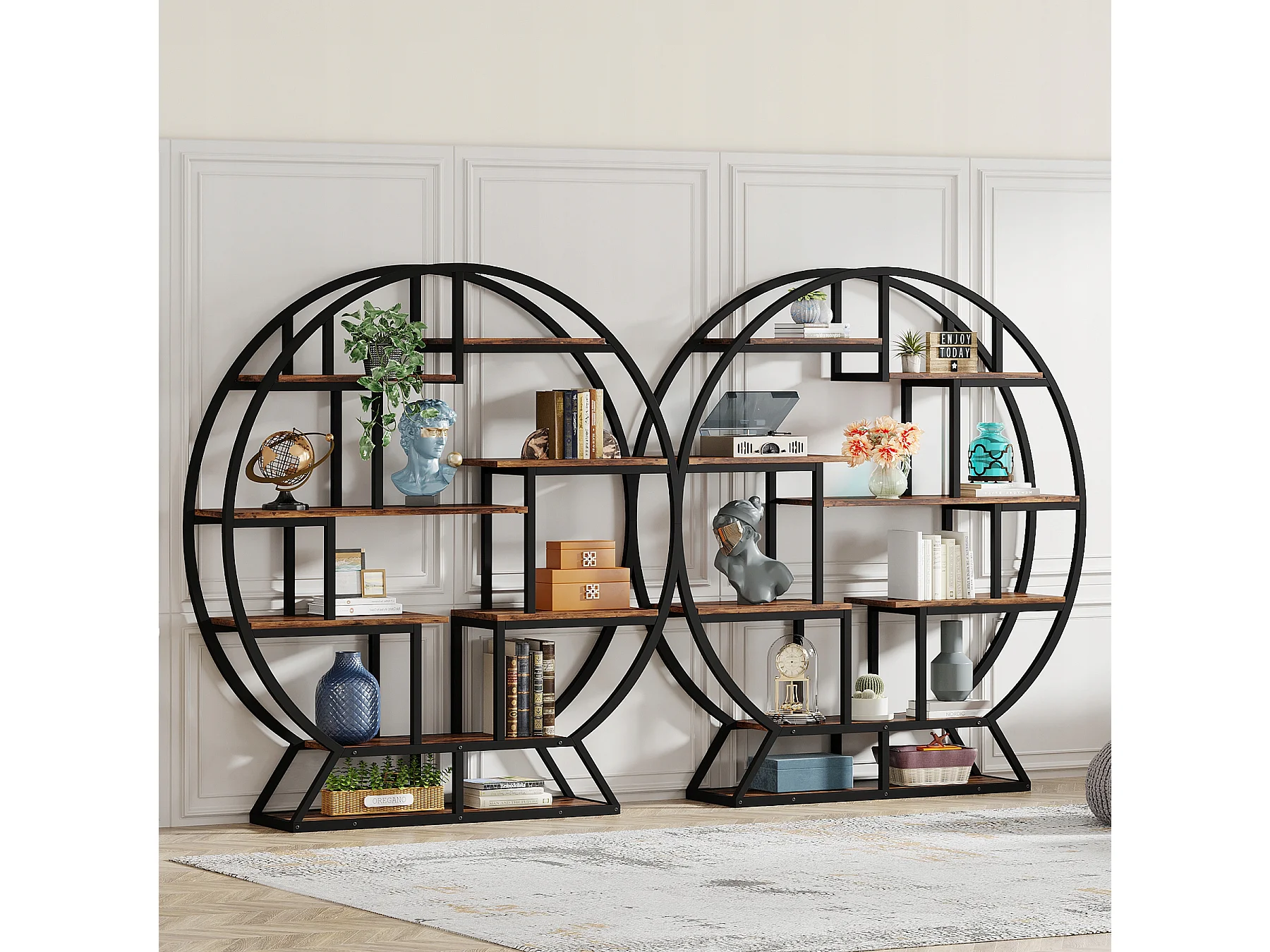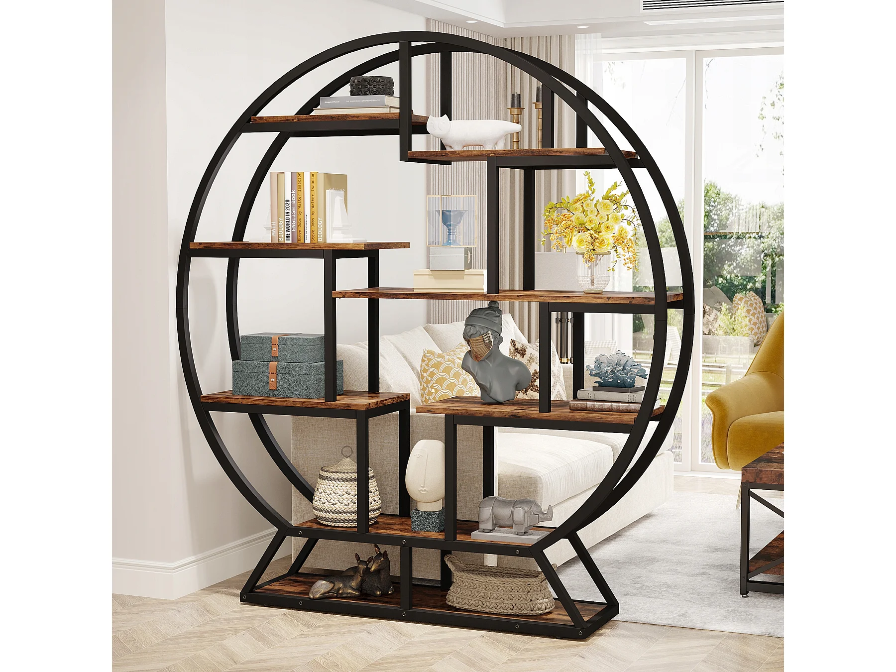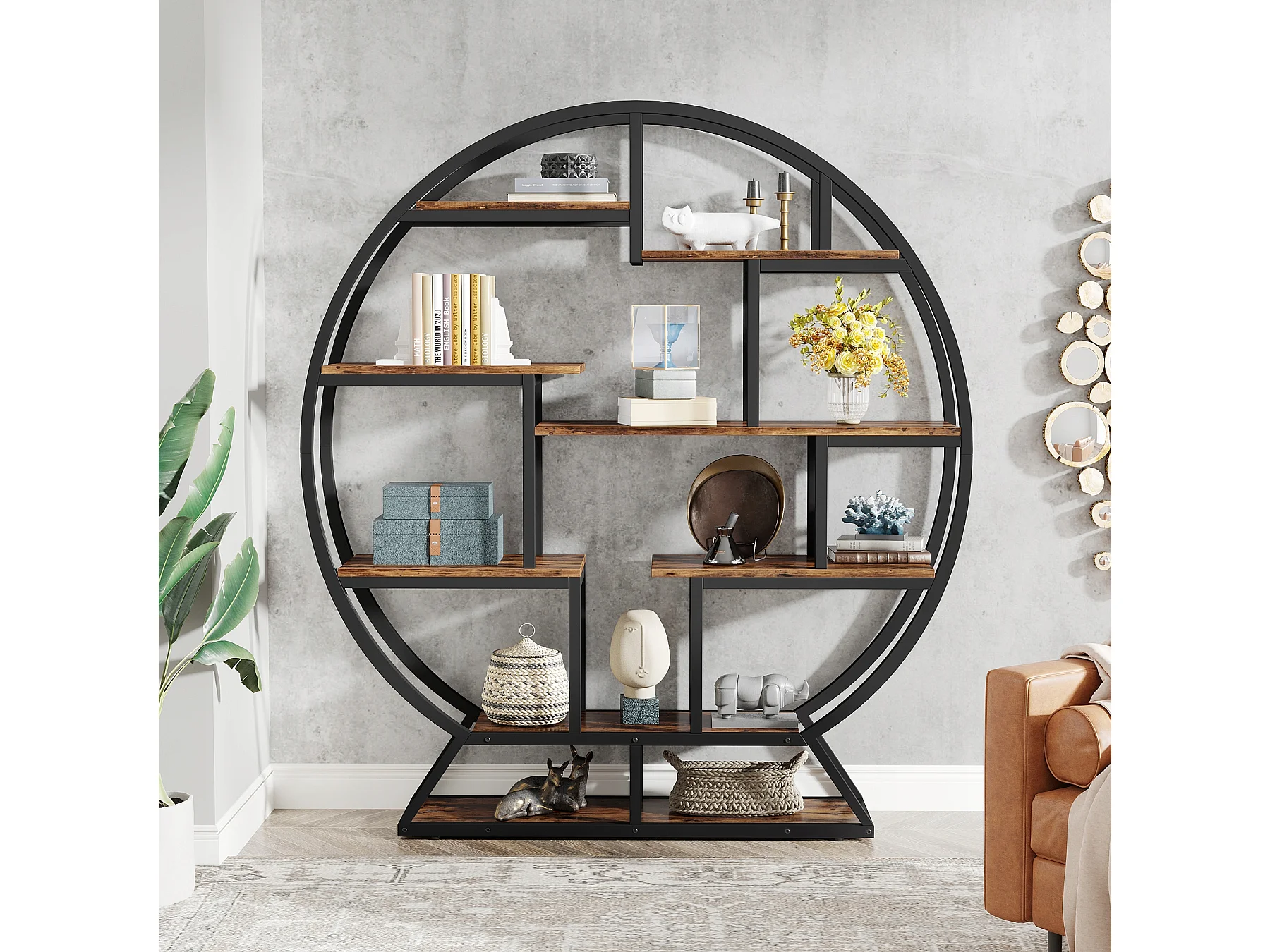 Bibliothèque, Bibliothèque Ronde, Industrielle à 5 Niveaux, Haute bibliothèque Autonome avec étagère de Rangement à 8 Ouvertures pour Salon, Bureau