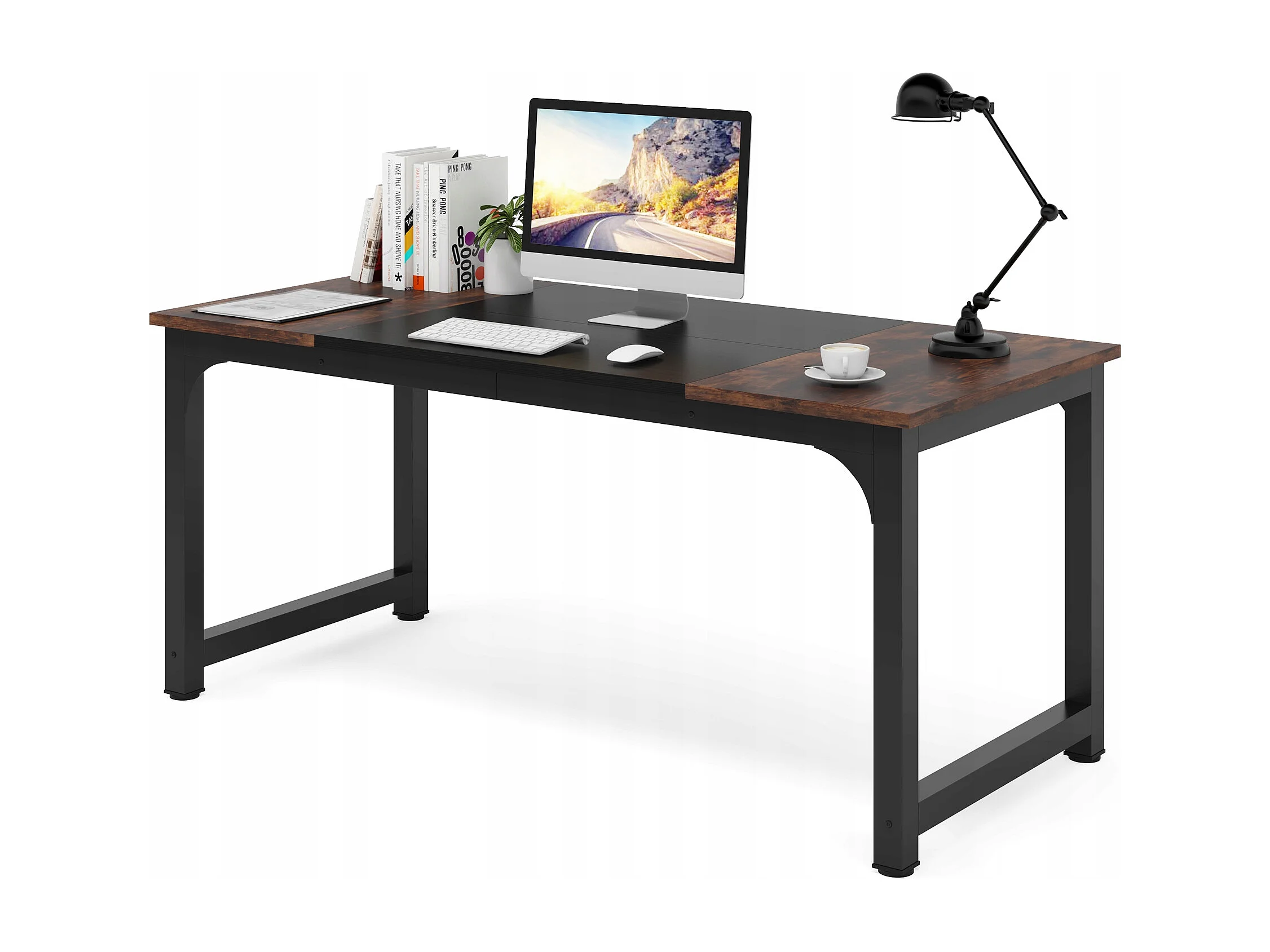 Tribesigns Bureau pour Ordinateur Portable, Table, Bureau d’étude pour Le télétravail, Poste de Travail pour Bureau, Chambre, Facile à Monter, 160 x 80 x 75 cm (Marron Rustique + Noir)
