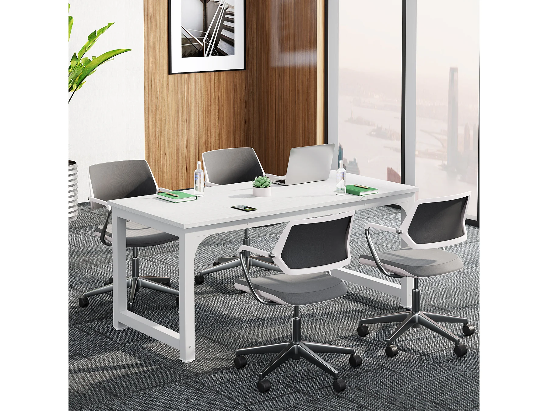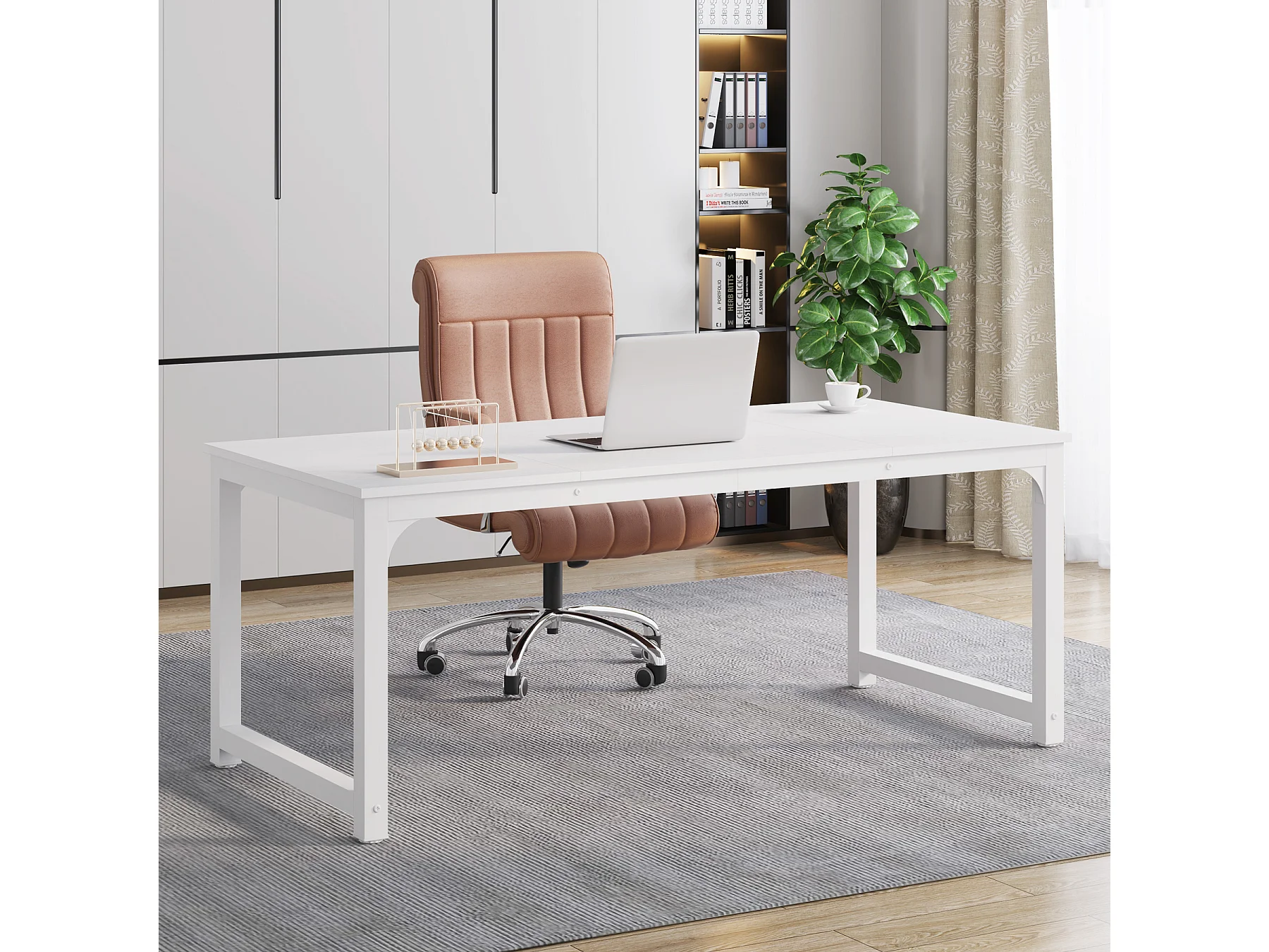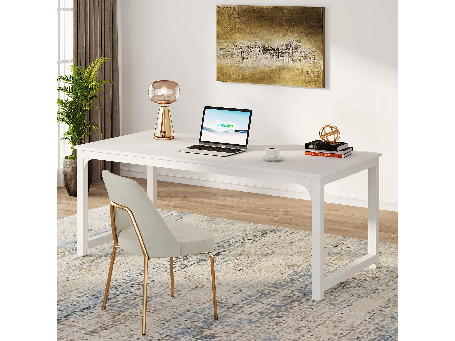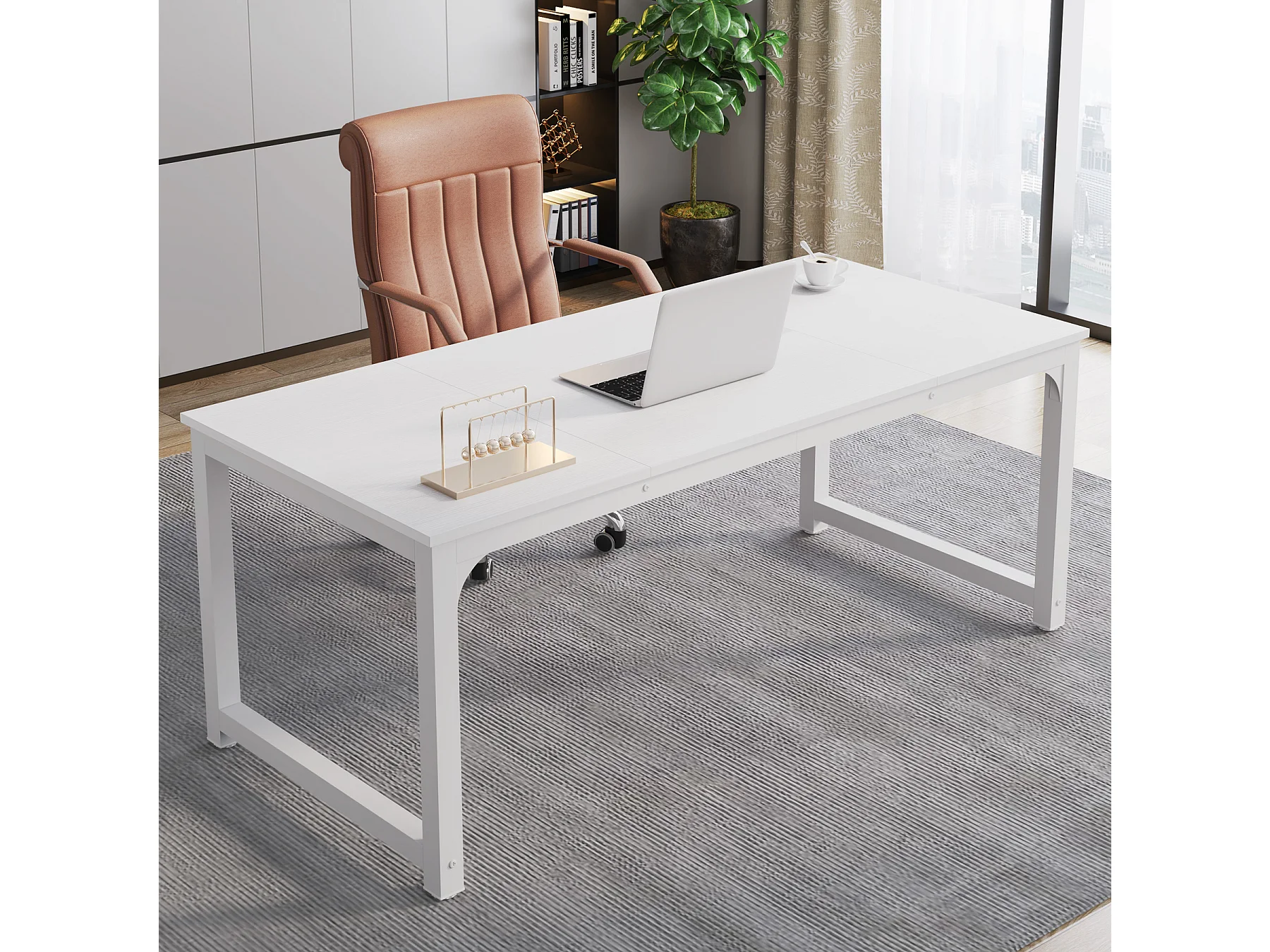 Bureau d'ordinateur, 200 x 70 x 75 cm, Bureau pour étudiants et Travailleurs, Bureau Double Longue Table d'ordinateur Bureau, Blanc