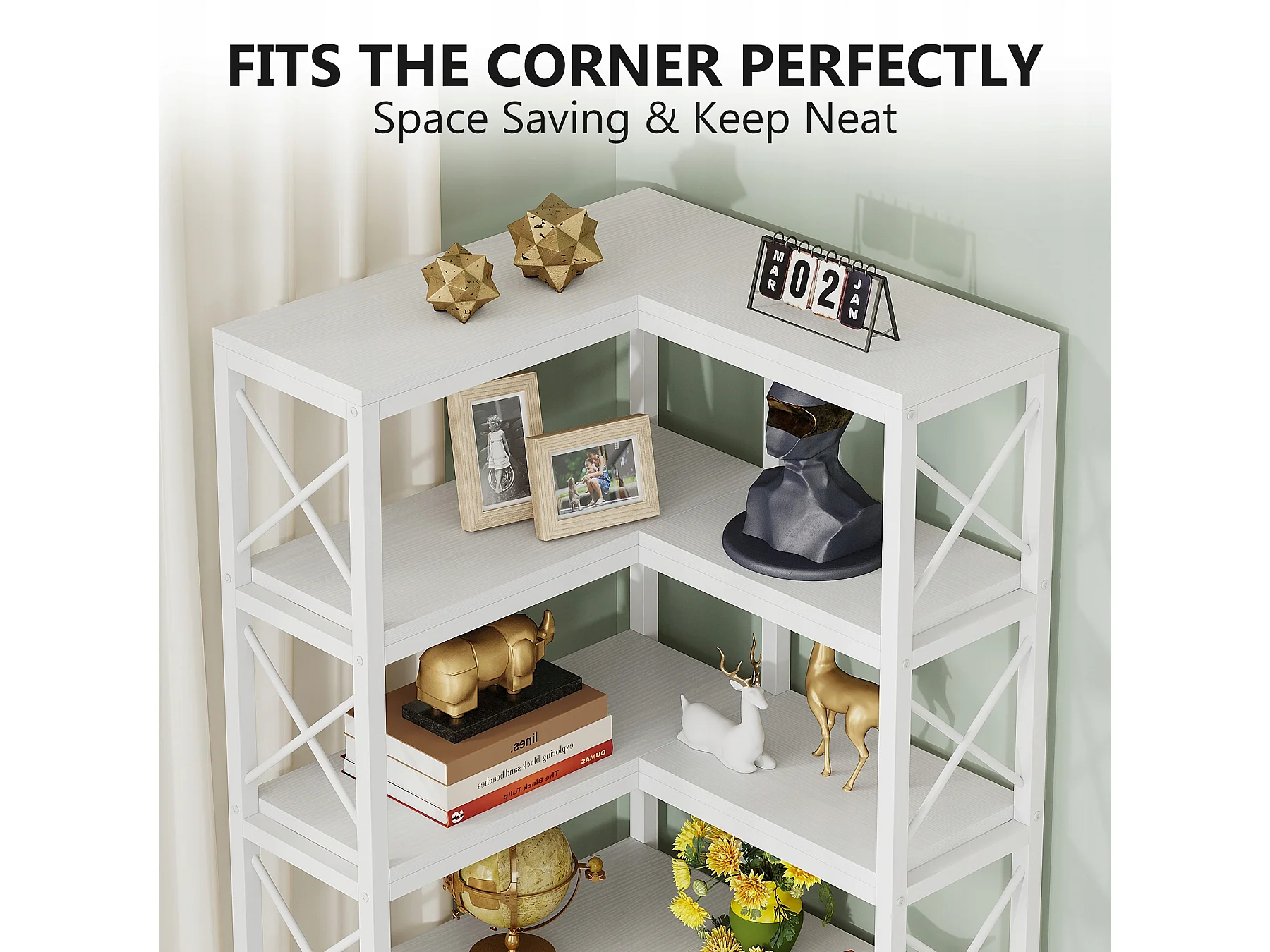 Etagère d'angle avec 5 tablettes - Bois en MDF - Blanc