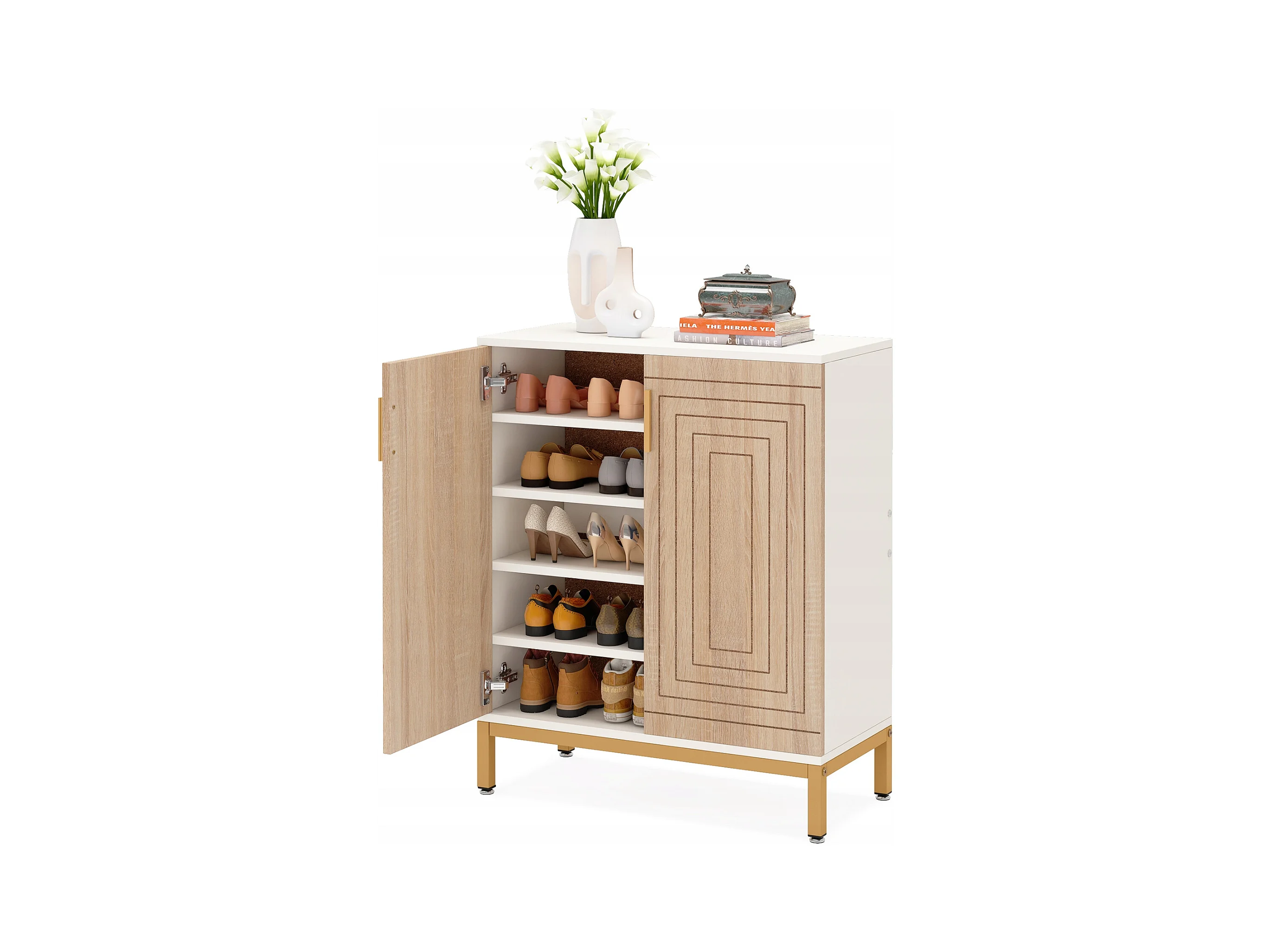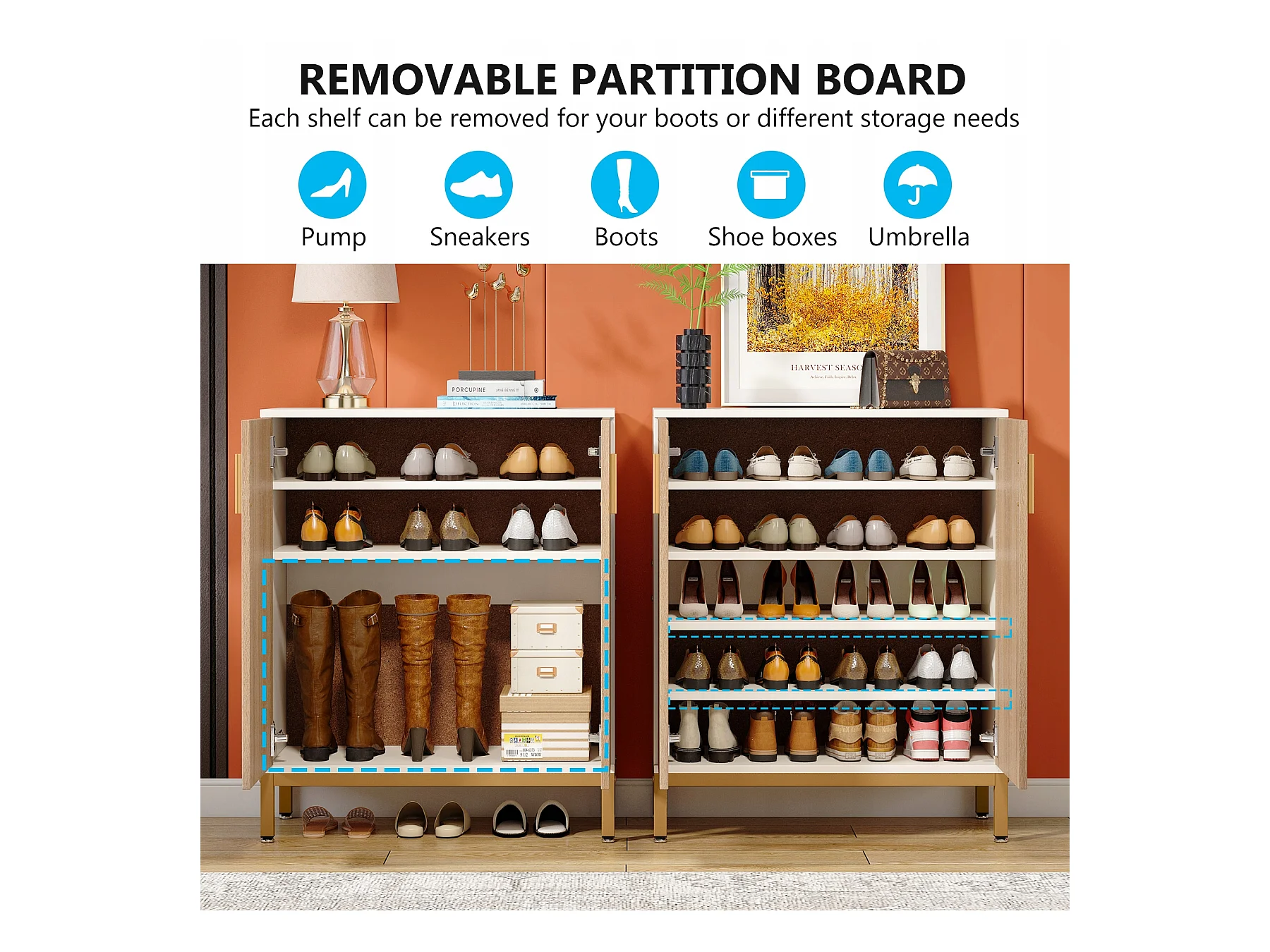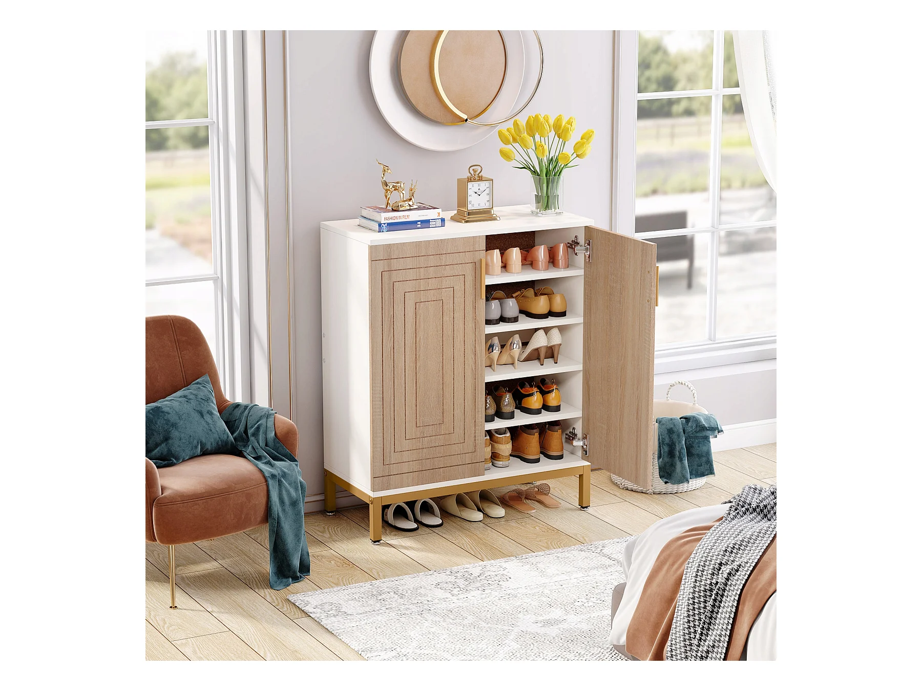 Meuble chaussures pour 20 paires de chaussures - Grande étagère à chaussures autoportante pour entrée avec 2 portes et étagères à 5 niveaux - Blanc