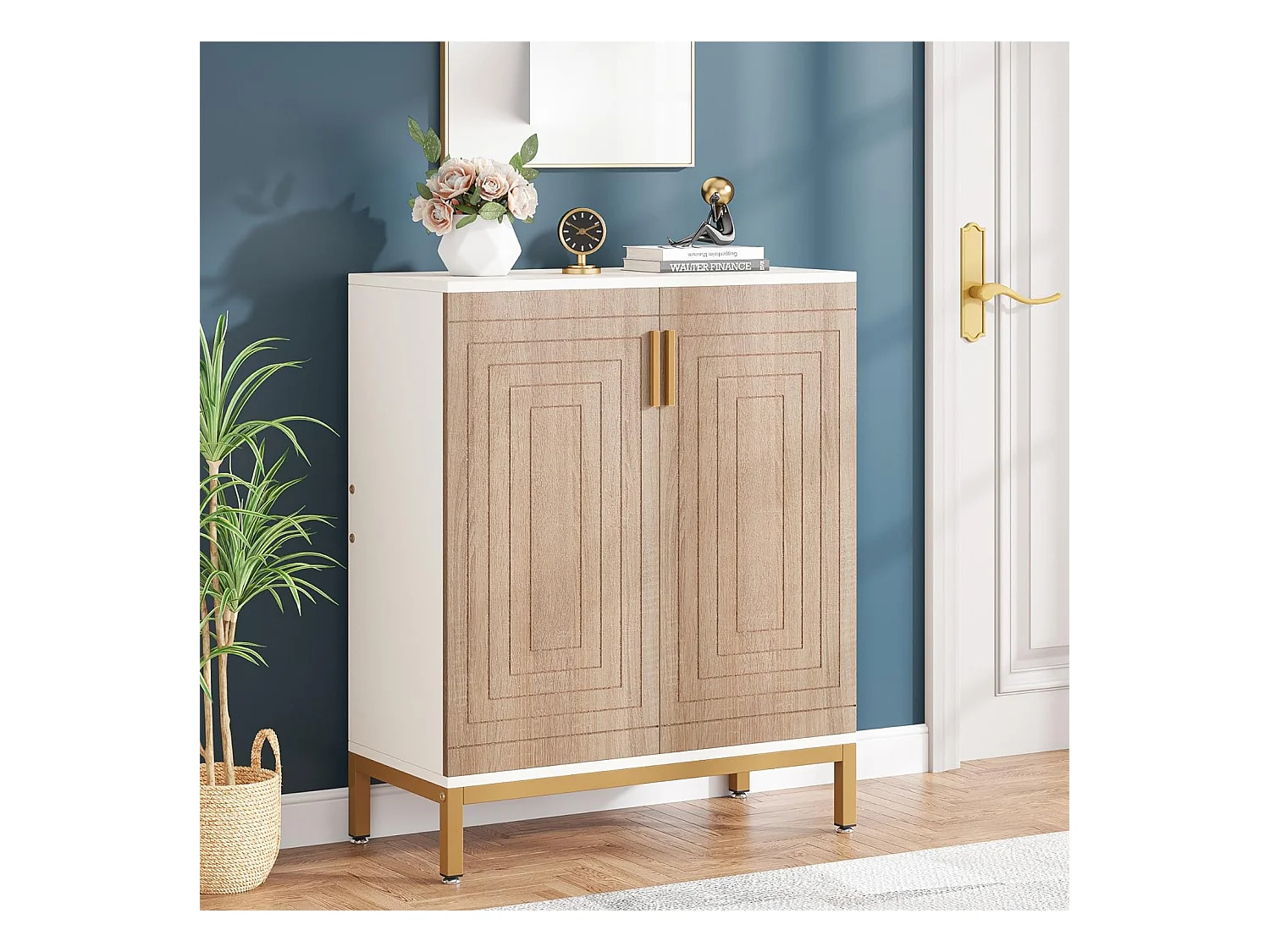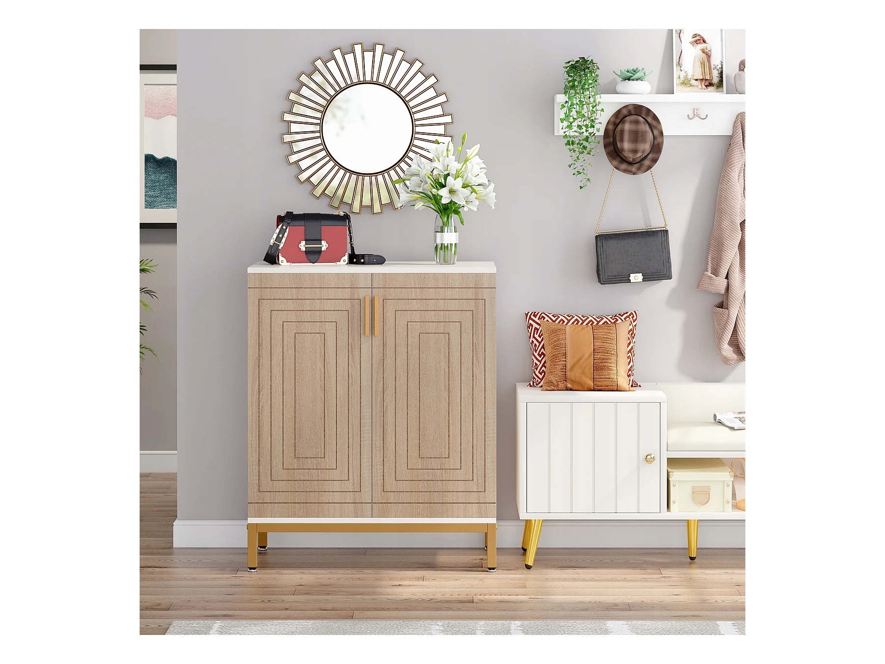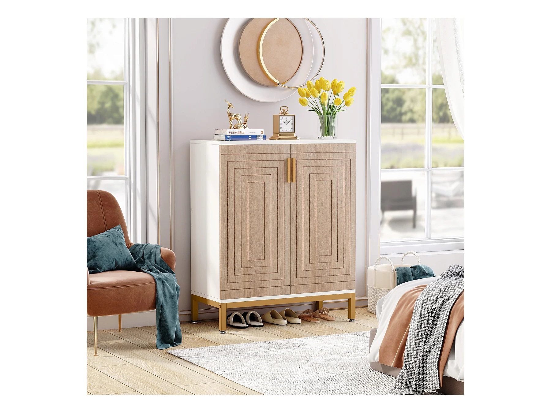 Meuble chaussures pour 20 paires de chaussures - Grande étagère à chaussures autoportante pour entrée avec 2 portes et étagères à 5 niveaux - Blanc