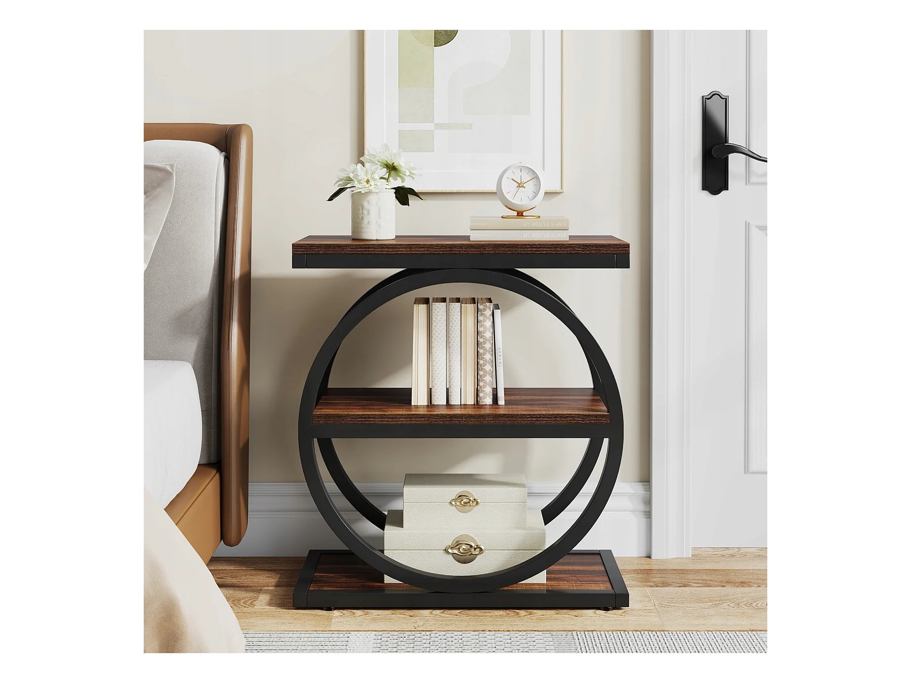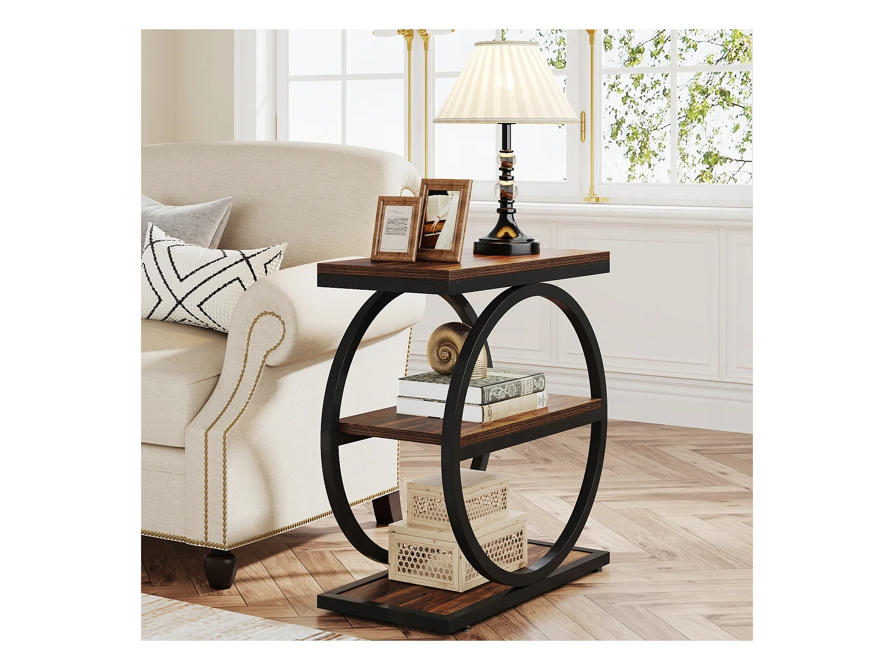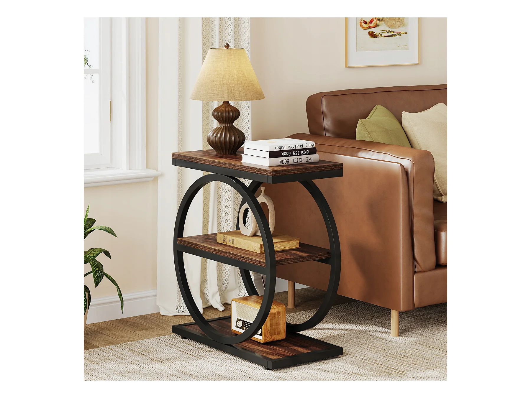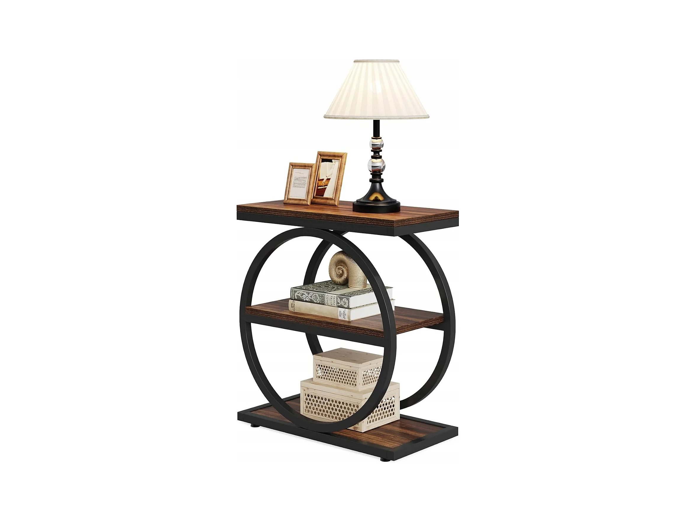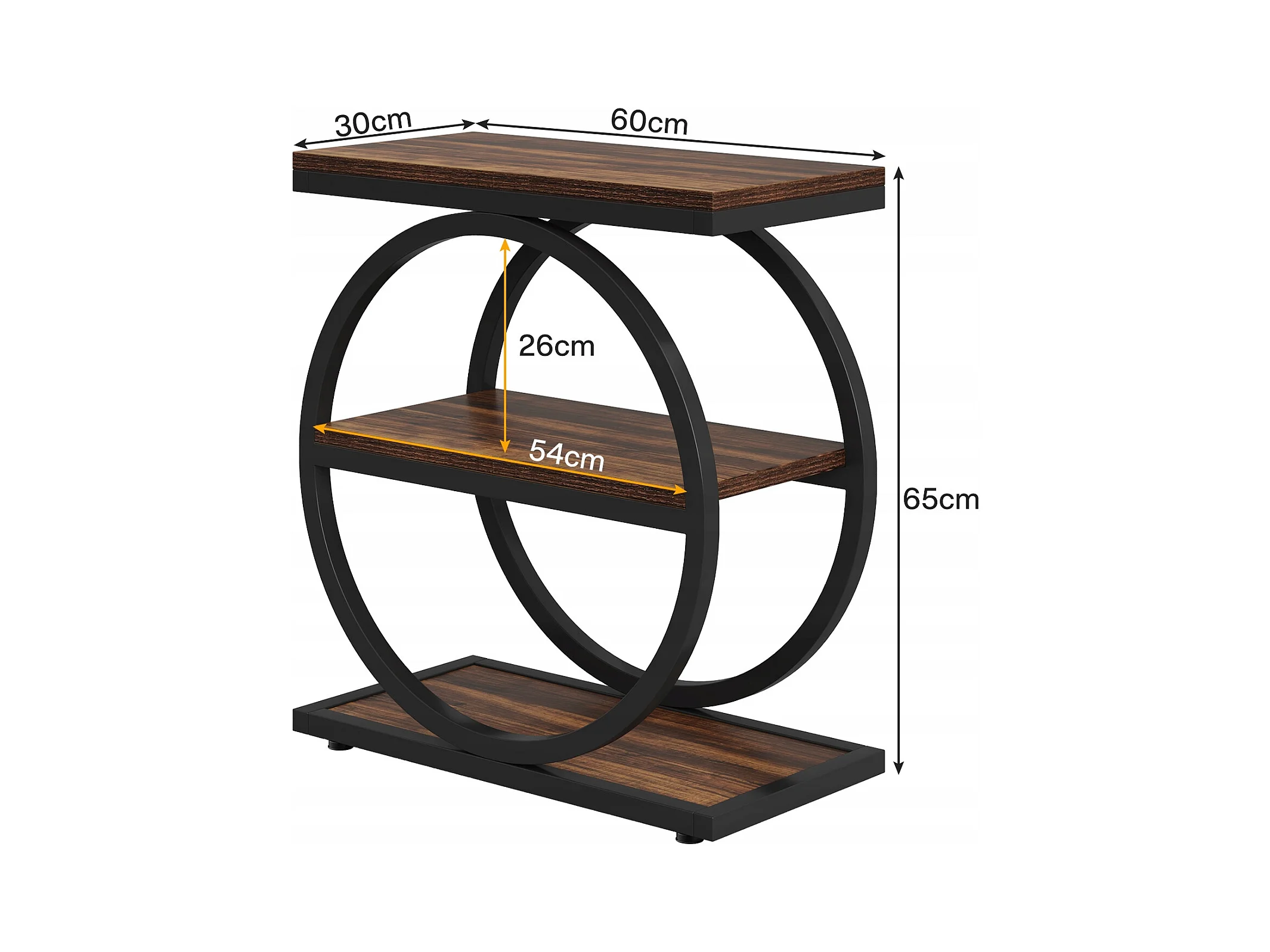 Table d'appoint étroite à 3 Niveaux, Table de Salon en Bois avec Cadre en métal Noir, Table Basse Industrielle pour canapé