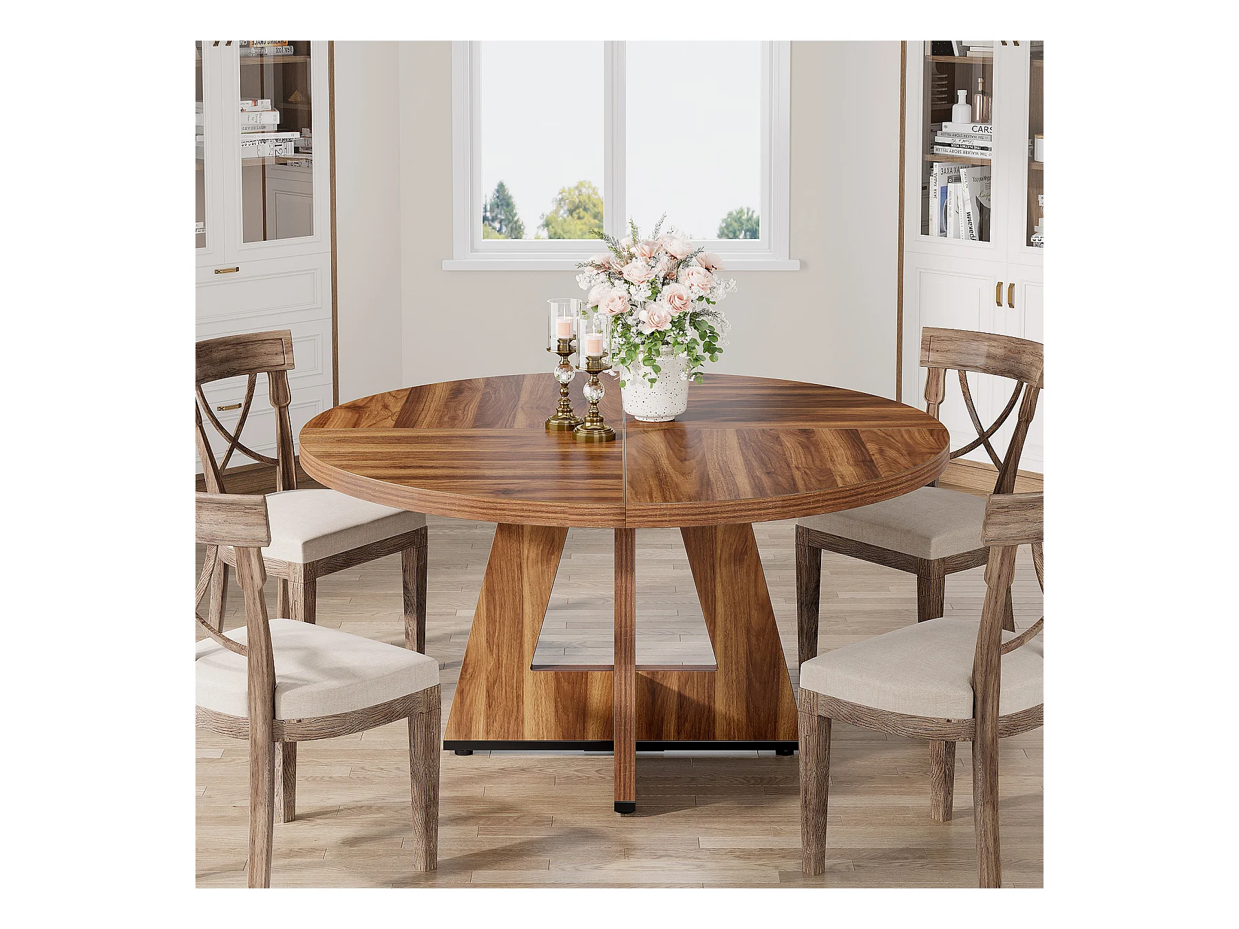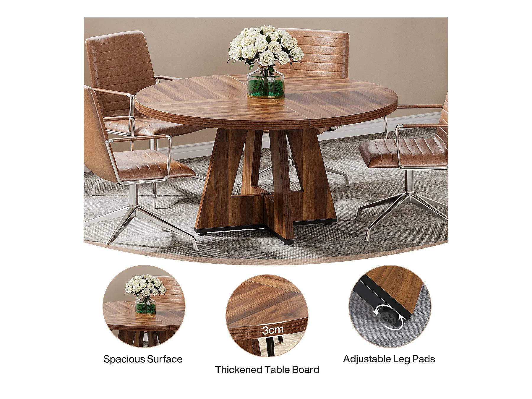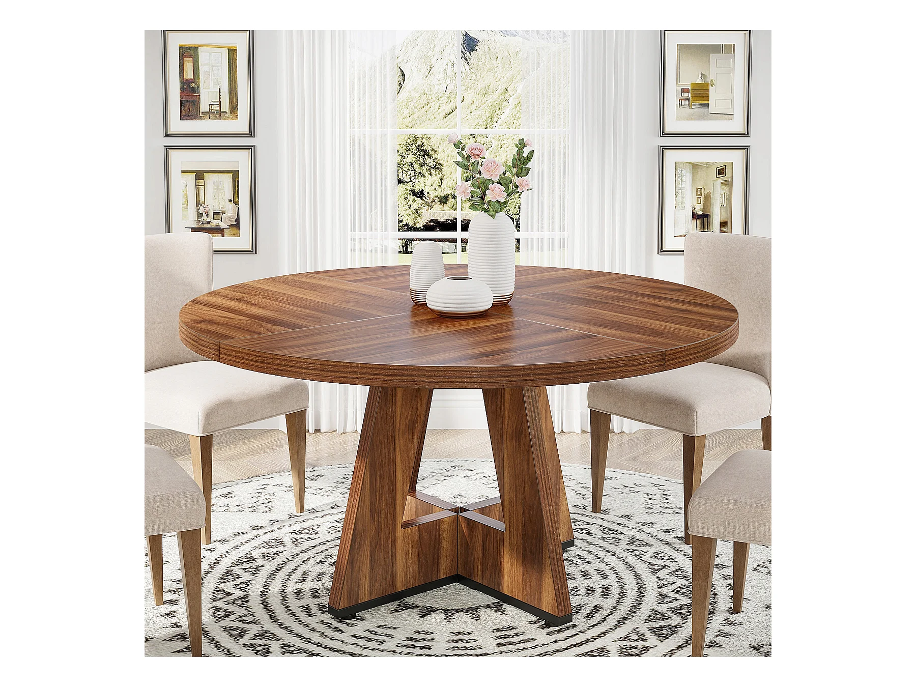 Table ronde pour salle à manger, cuisine, salle à manger, salon, 120 cm, pour 4 personnes, marron rustique (table uniquement)