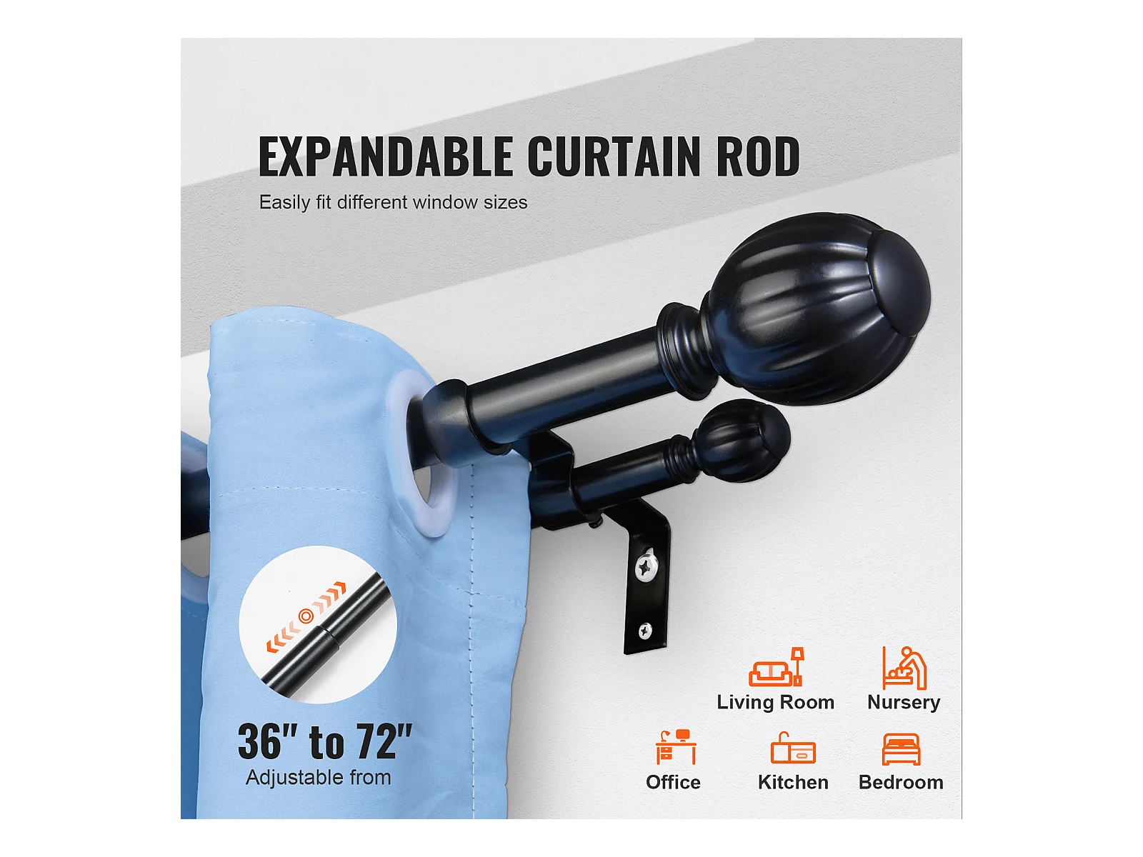 Tringles à Rideaux à Double Tige SucceBuy, Longueur Réglable de 36 à 72 Pouces, Embouts de Capuchon