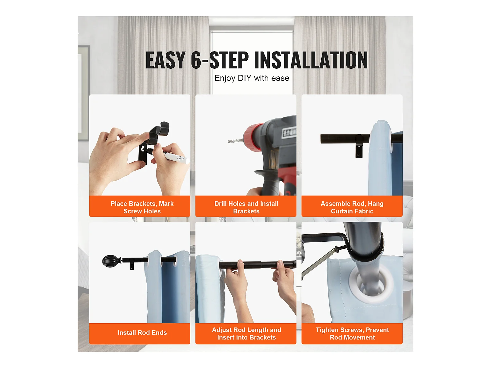 Tringles à Rideaux à Double Tige SucceBuy, de 183 à 366 cm de Longueur Réglable avec Embouts de Capuchon