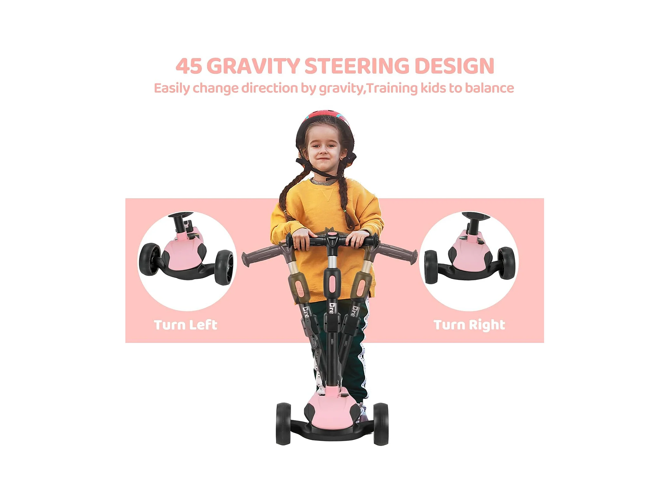 Trottinette pour Enfants BremToy - Trottinette avec Guidon Réglable en Hauteur et Roues LED