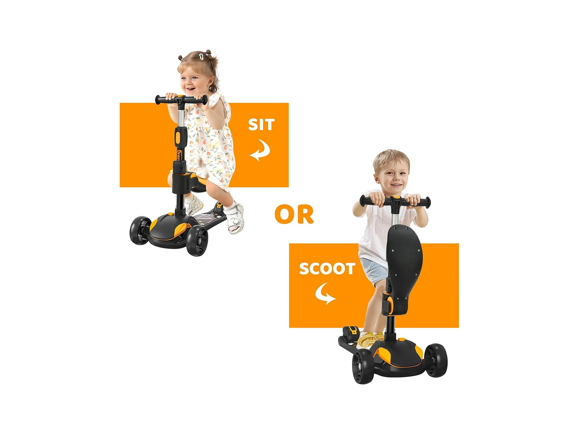 Trottinette Enfant Pliable BremToy avec Siège, Roues LED et Guidon Réglable en Hauteur pour 2-8 Ans