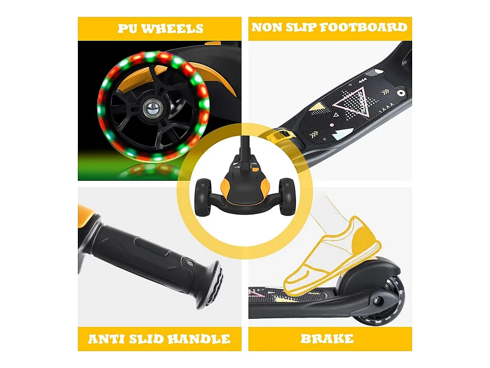 Trottinette Enfant YOLEO avec Roues LED, 4 Positions Réglables en Hauteur, Guidon Pliable, à partir de 3 Ans