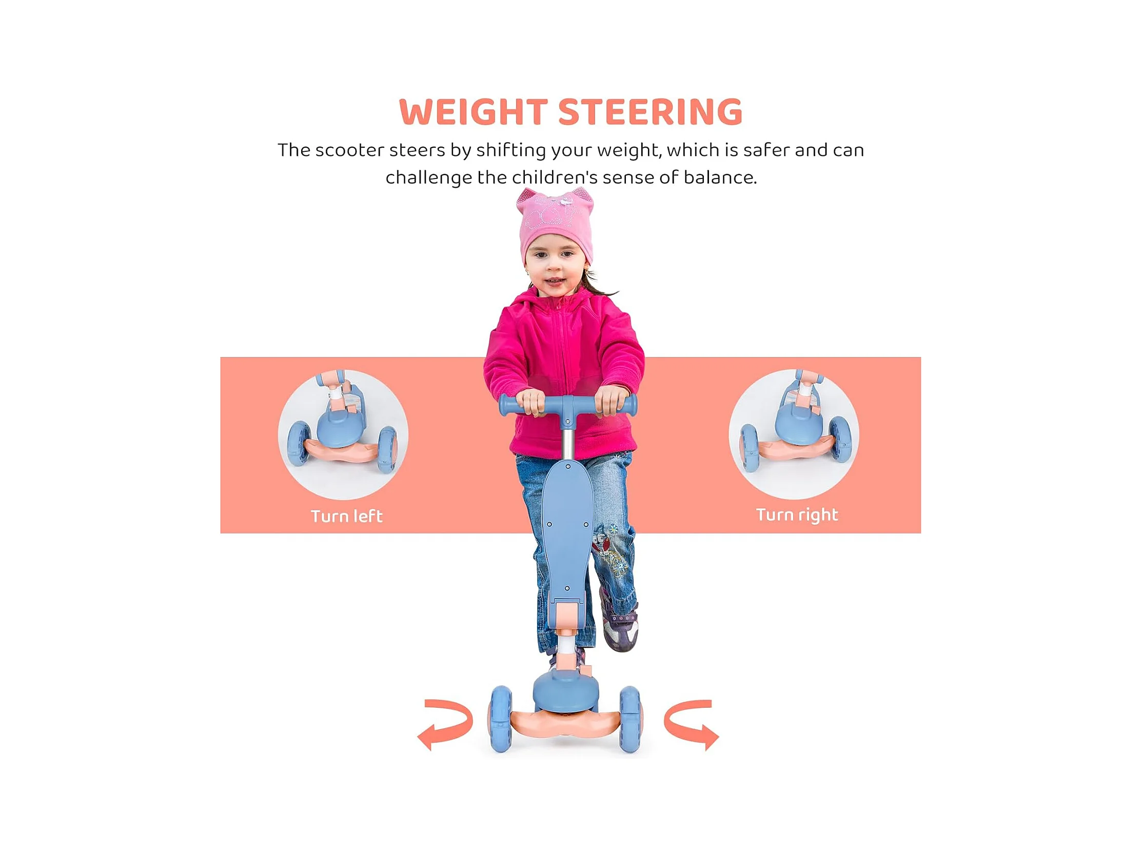 Trottinette 3-en-1 pour Enfant avec Siège Amovible, Grandes Roues LED, Réglable en Hauteur à partir de 2 Ans, rose