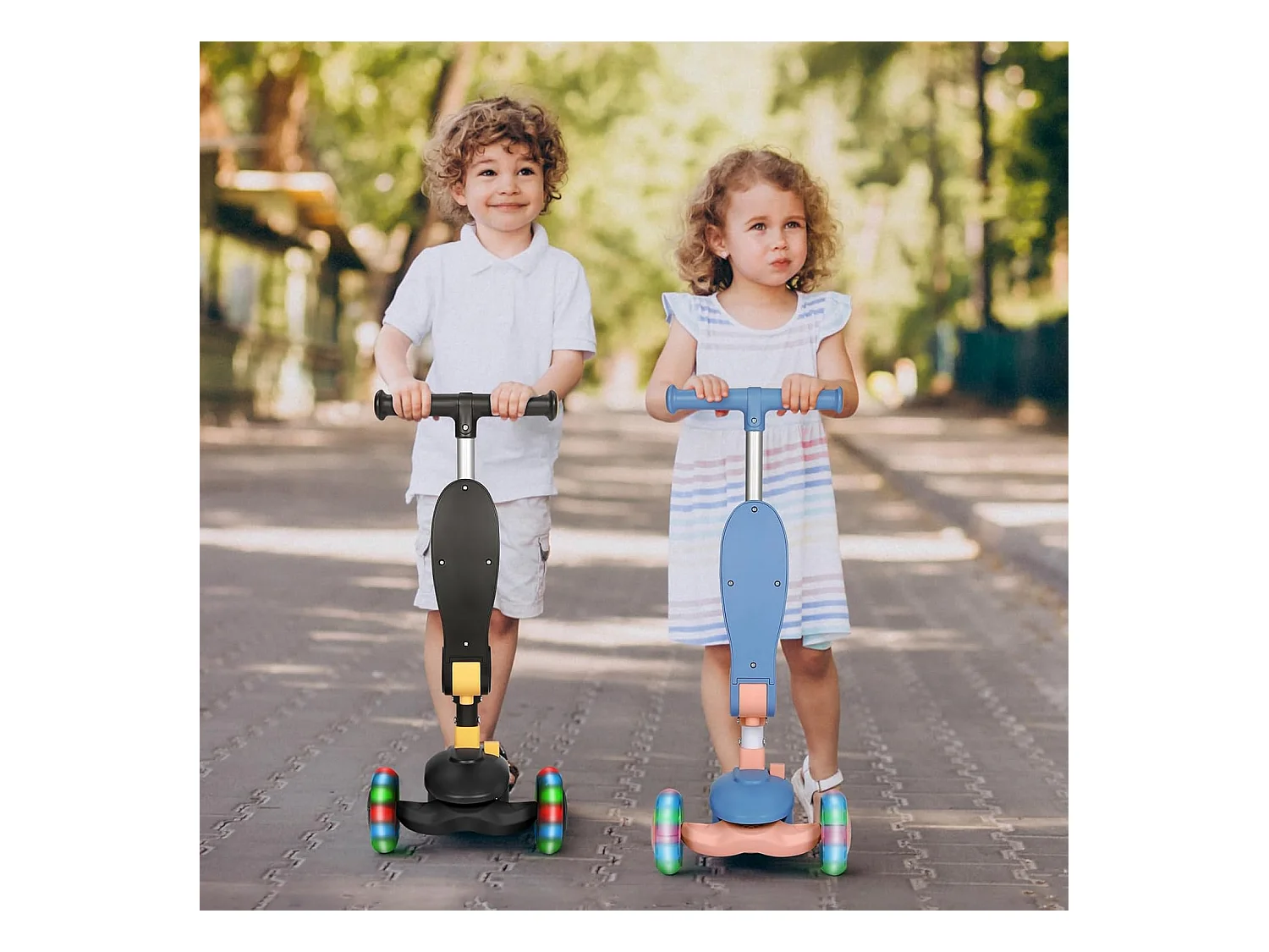 Trottinette Enfant YOLEO avec Roues LED, 4 Positions Réglables en Hauteur, Guidon Pliable, à partir de 3 Ans