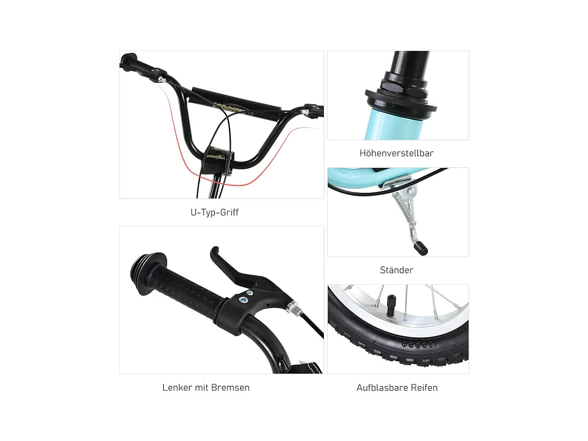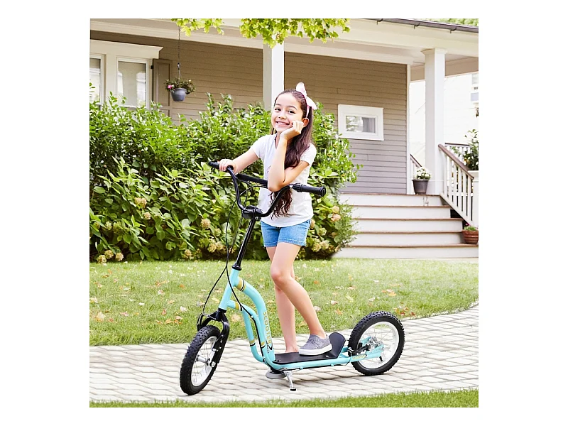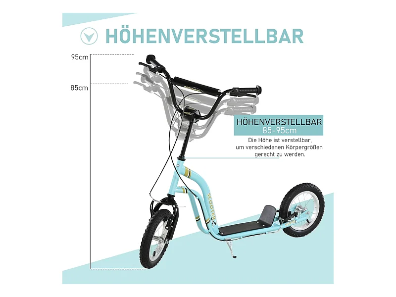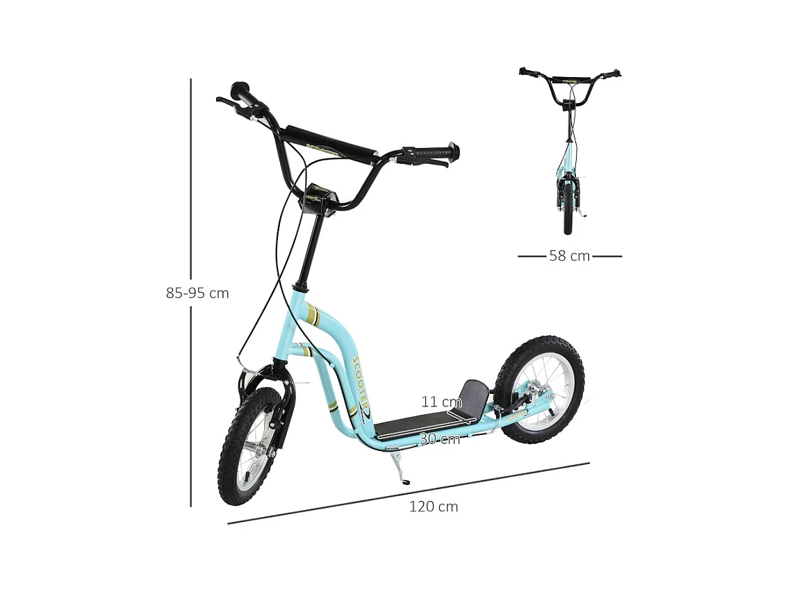 Trottinette enfant réglable en hauteur, 12 pouces avec pneus air, acier, bleu clair (120x58x85-95cm)