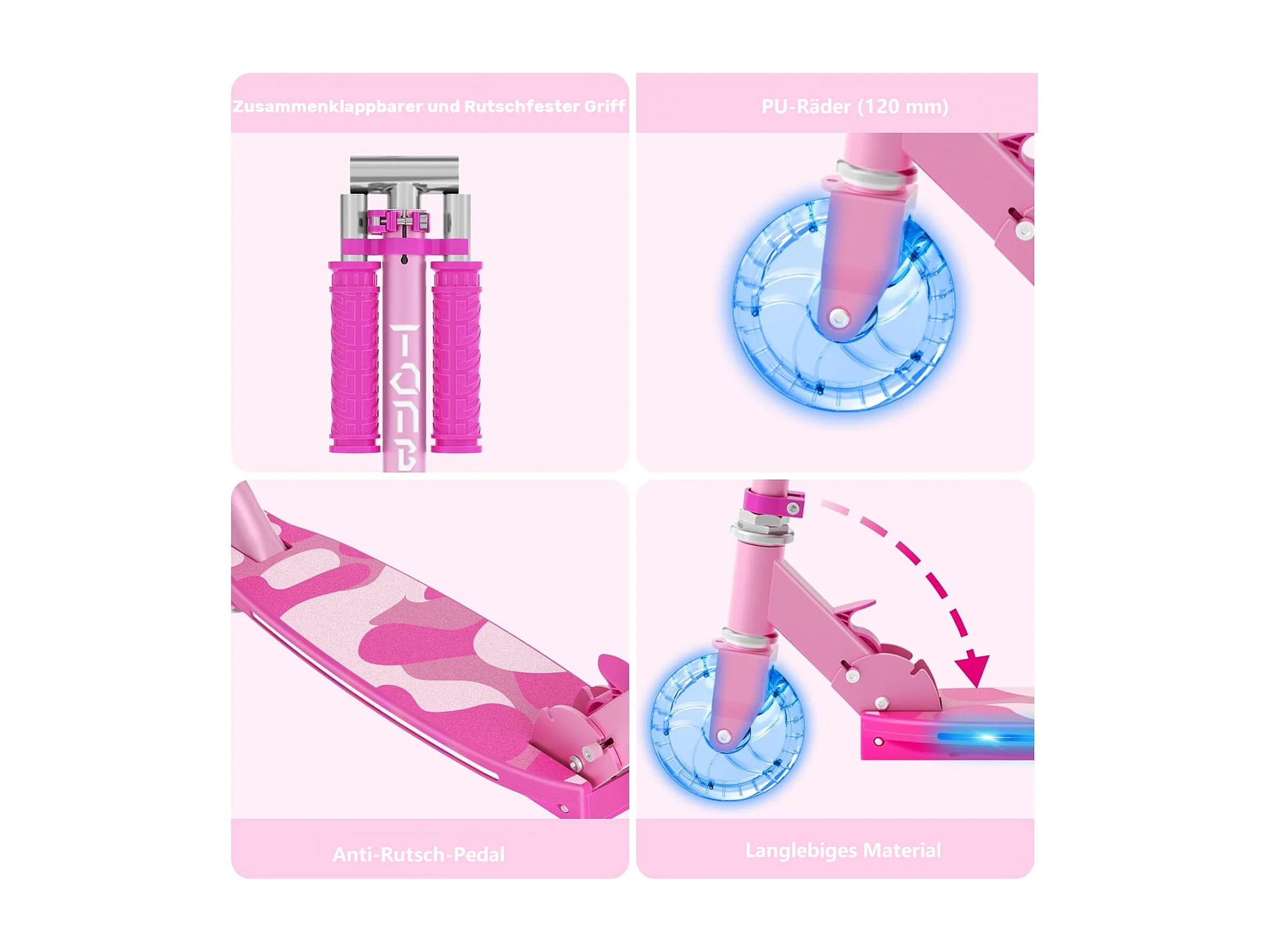 Trottinette Enfant TONBUX avec 2 Roues Lumineuses, Potence et Plateforme, 3 Poignées Réglables en Hauteur, Légère, pour 5-12 Ans