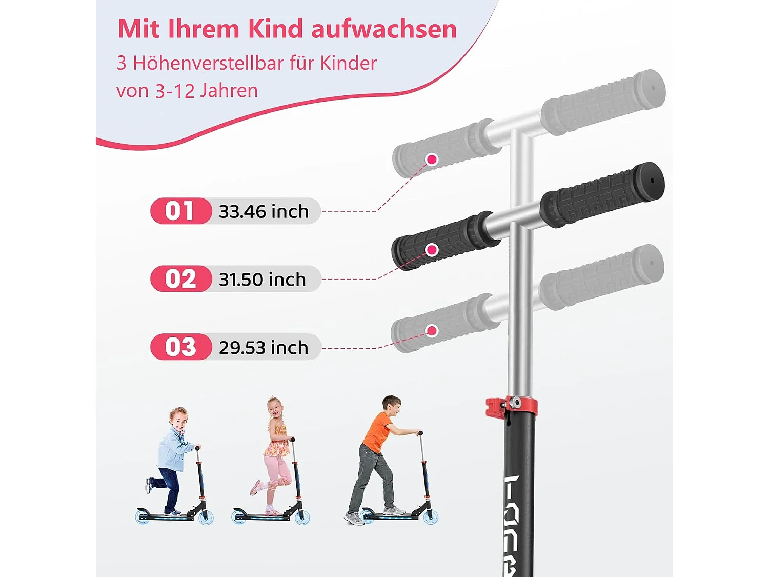 Trottinette Enfant YOLEO avec 4 Hauteurs Réglables, Roues Lumineuses LED, pour 3-12 Ans
