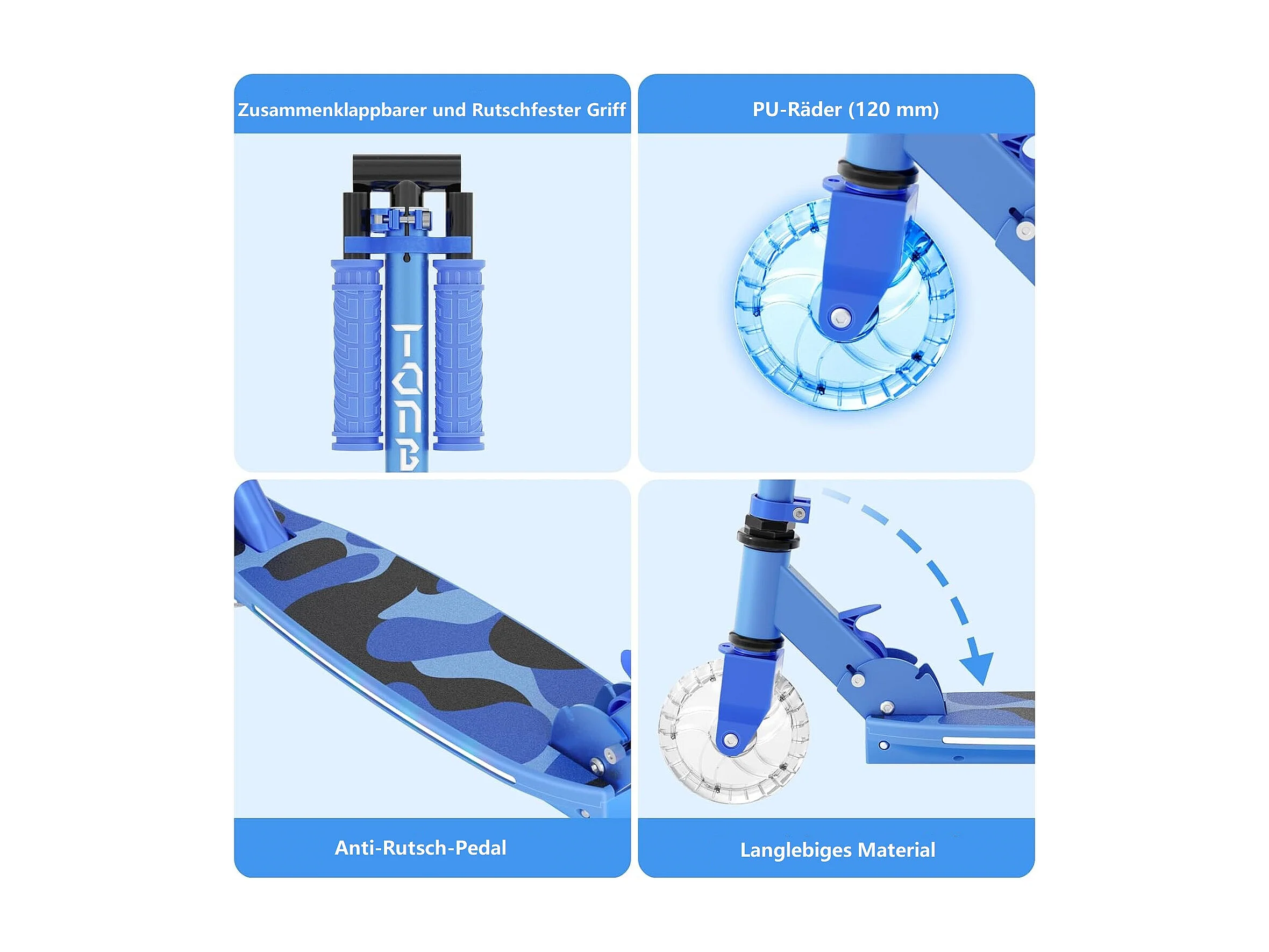 Trottinette Enfant TONBUX avec 2 Roues Lumineuses, Potence et Plateforme, 3 Poignées Réglables en Hauteur, Légère, pour 5-12 Ans