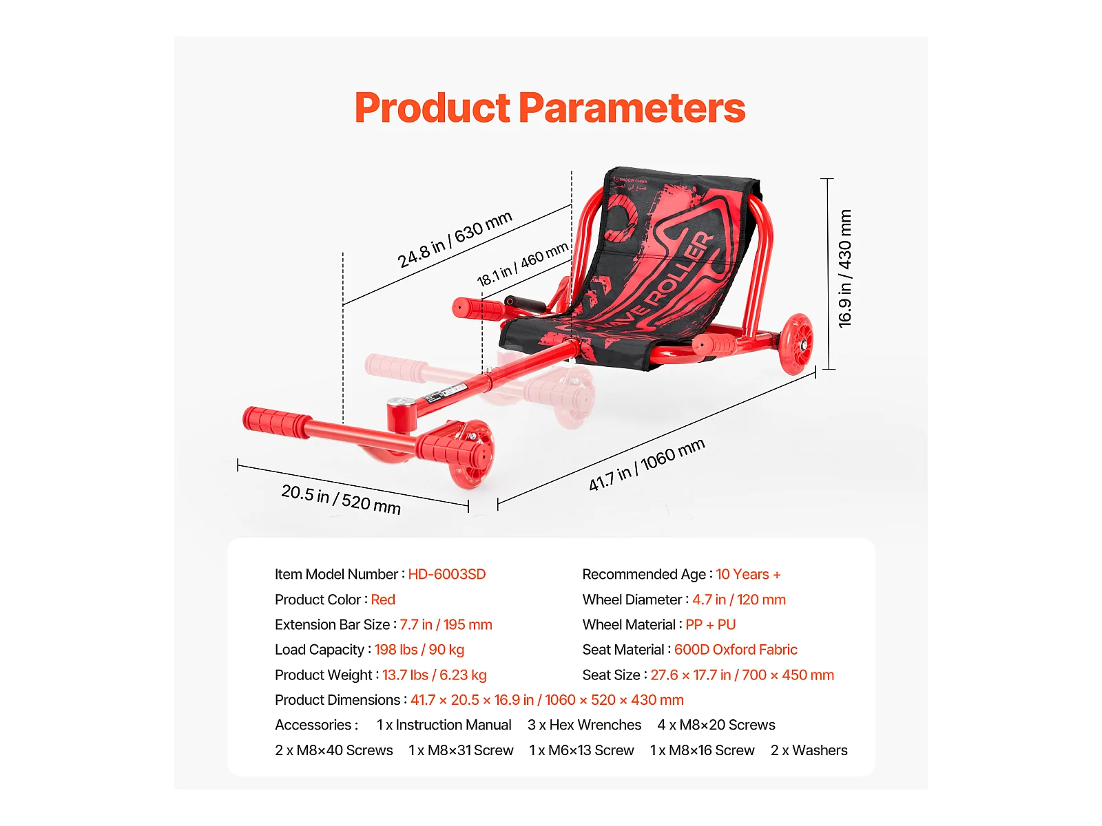Trottinette SucceBuy, Trottinette à Enfourcher, Capacité de 90 kg, pour les 10 Ans et Plus, Alimentation en Zigzag, pour l'Intérieur et l'Extérieur, Rouge