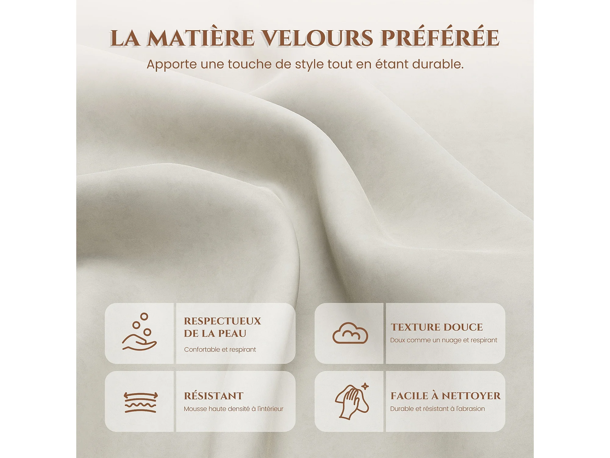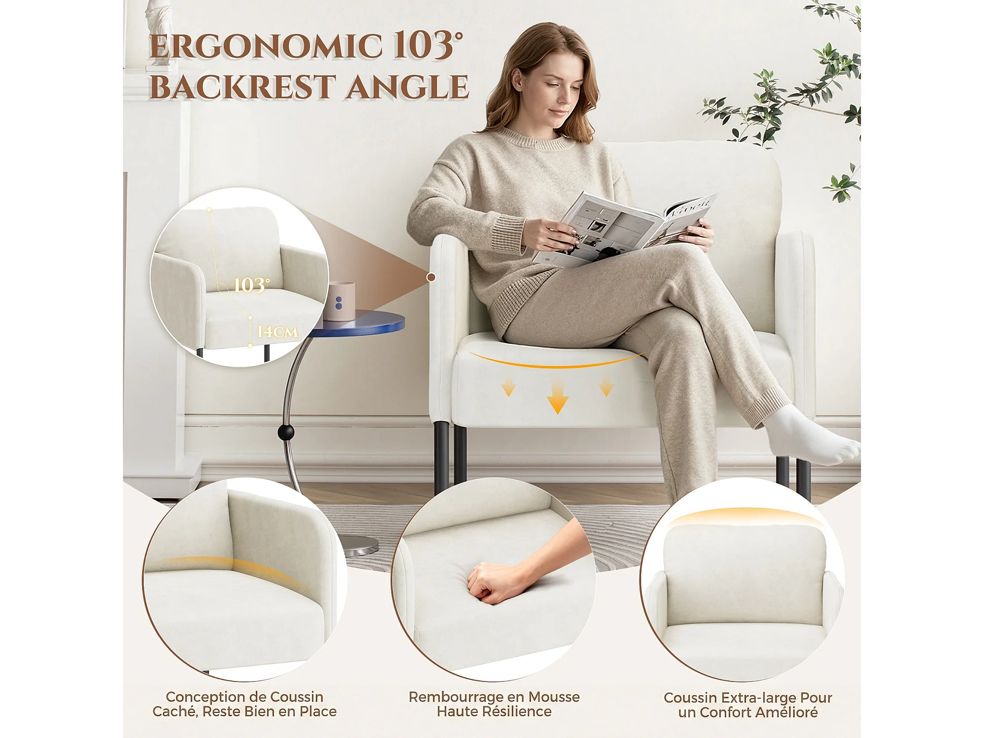 Fauteuil de salon haut dossier rembourré en velours blanc, pieds en métal, coussin extra large