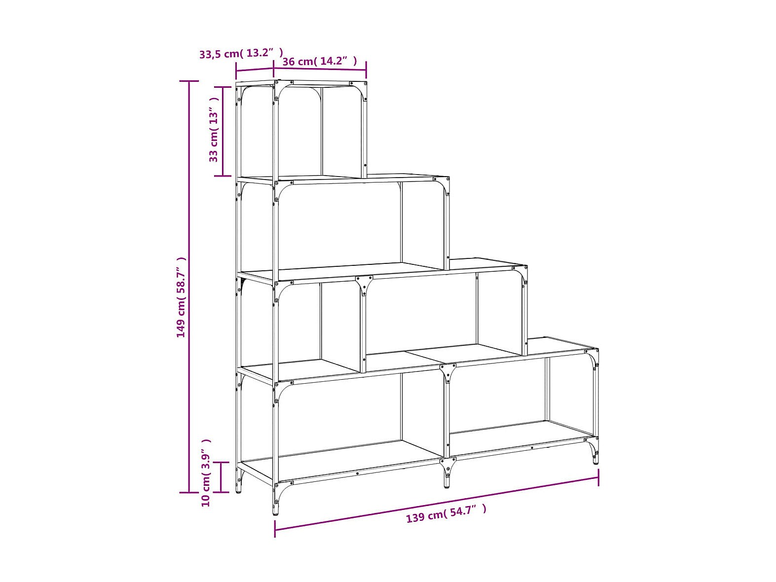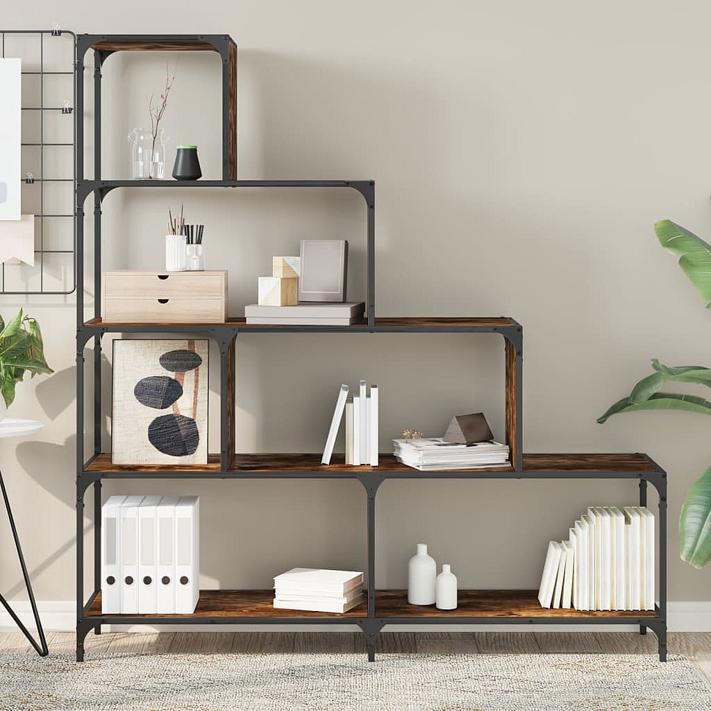 Unaris Bibliothèque à 4 niveaux chêne fumé bois d'ingénierie