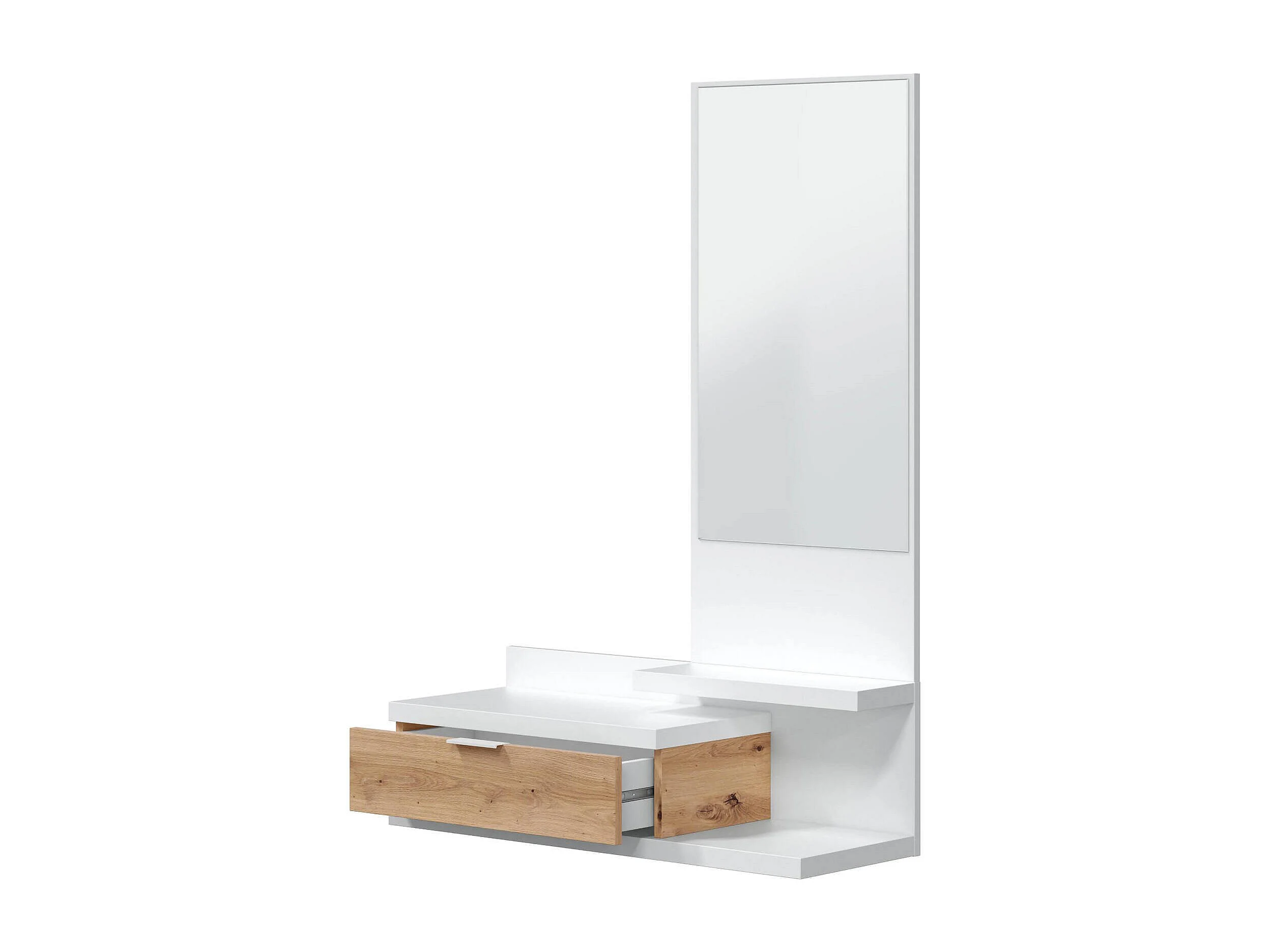 Meuble d'entrée Dodd, Entrée 2 portes, Armoire avec miroir, Rangement multifonctionnel, 77x24h91 cm, Blanc et Chêne