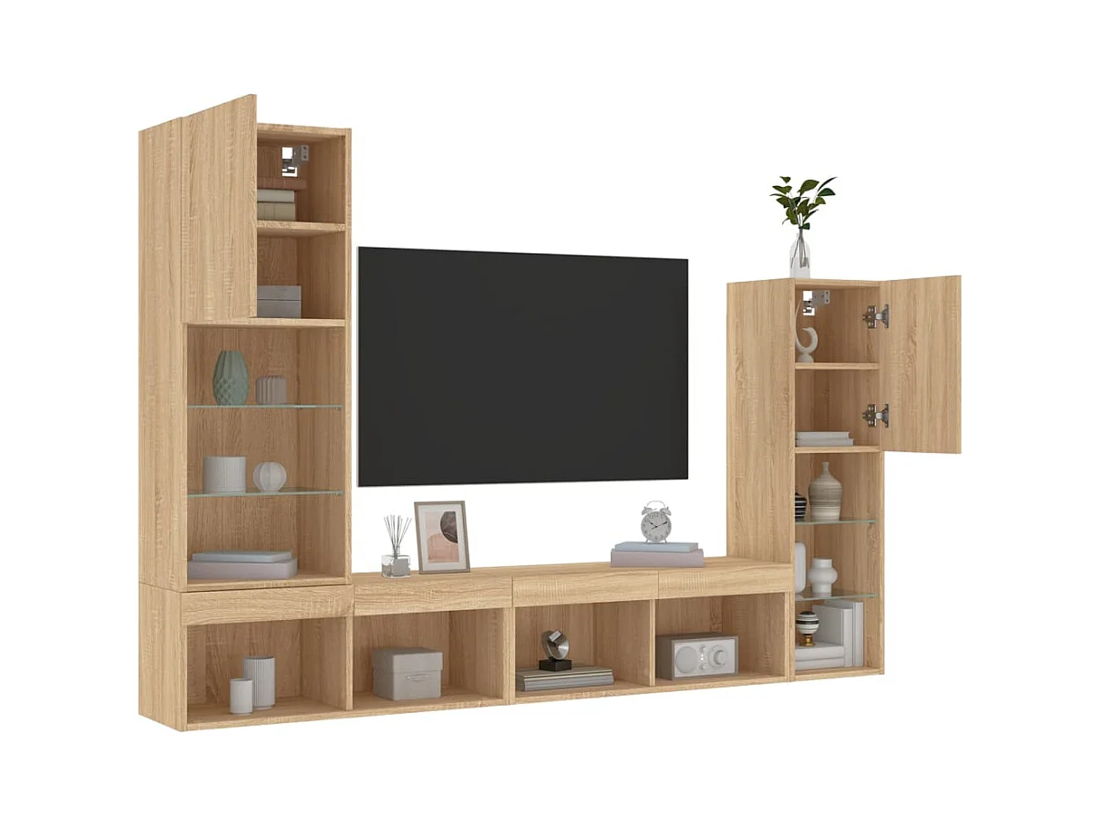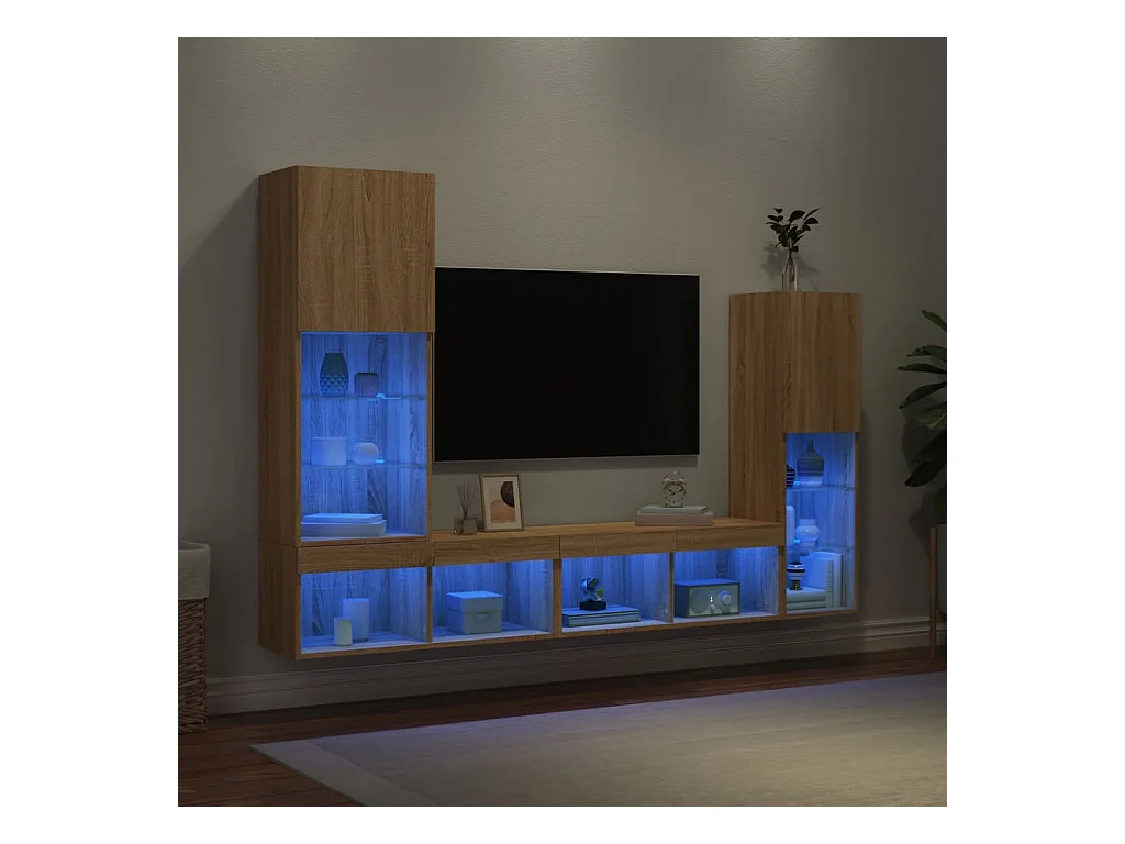 Ensemble de meubles TV muraux 7pcs et lumières LED chêne sonoma