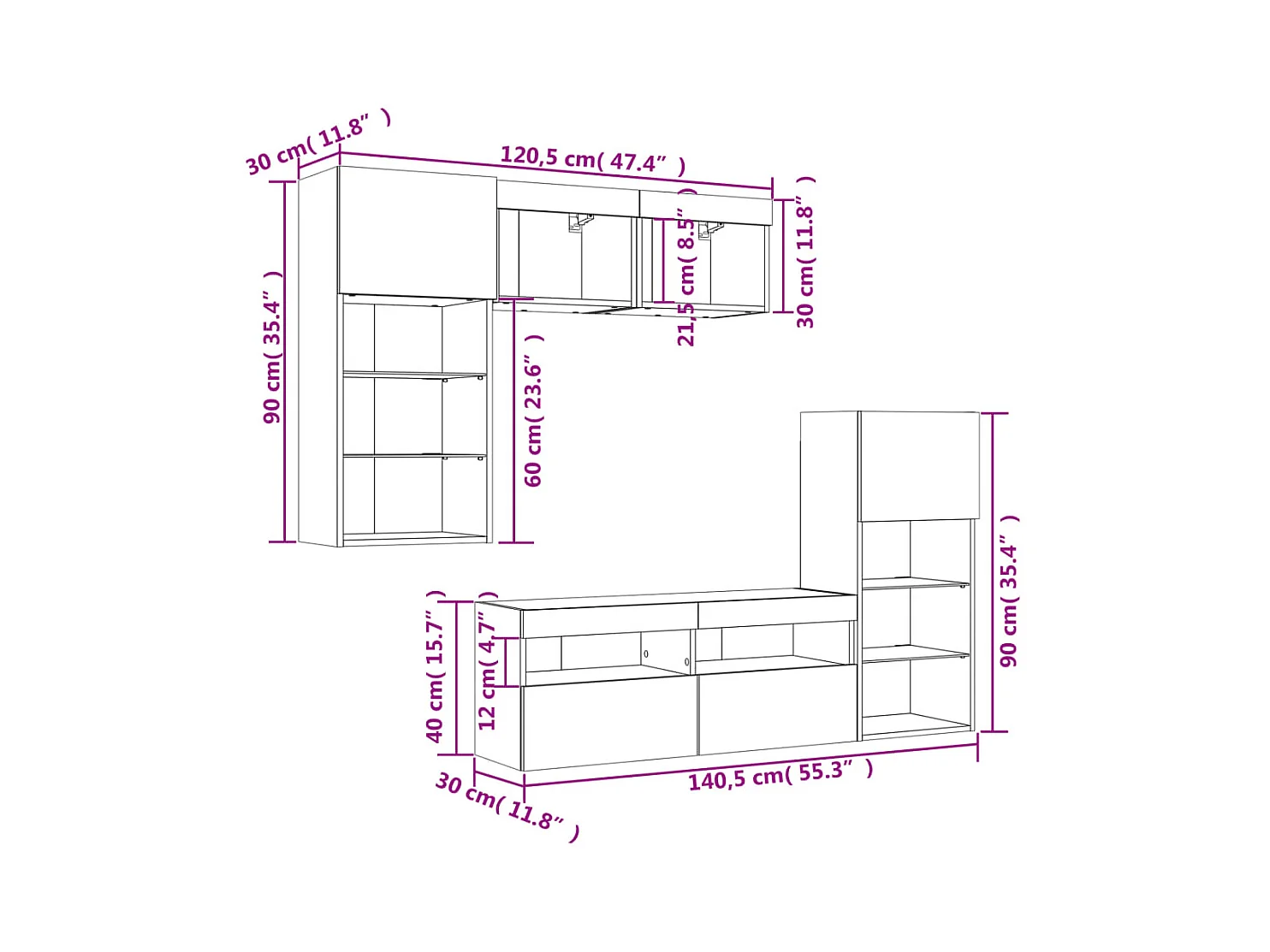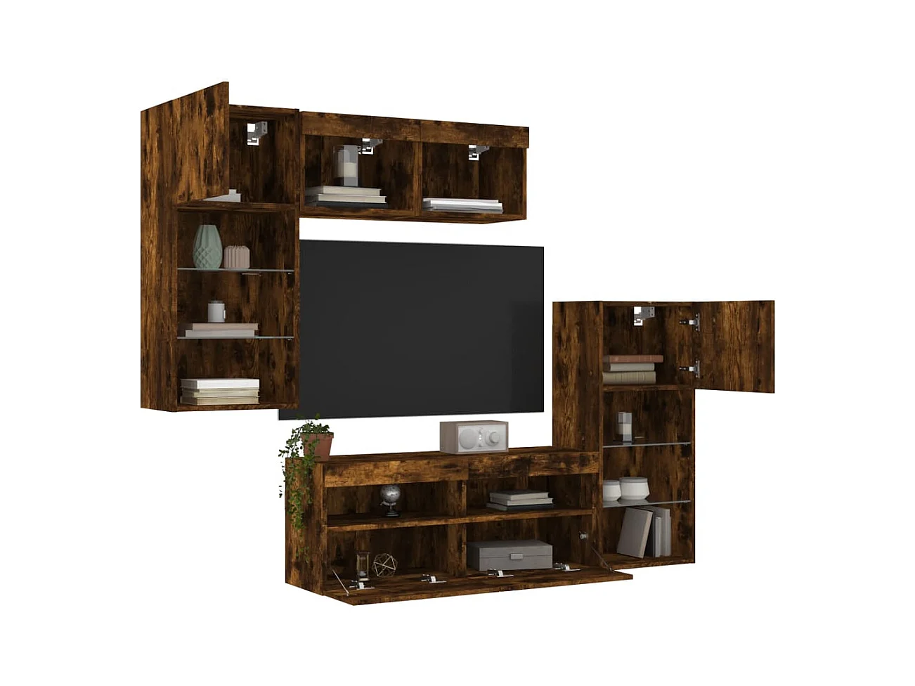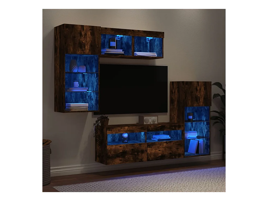 Unités murales TV avec LED 5 pcs chêne fumé bois d'ingénierie