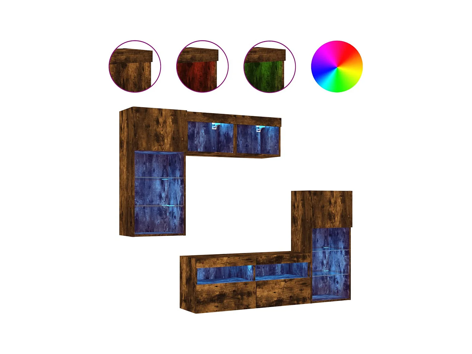 Unités murales TV avec LED 8 pcs chêne fumé bois d'ingénierie