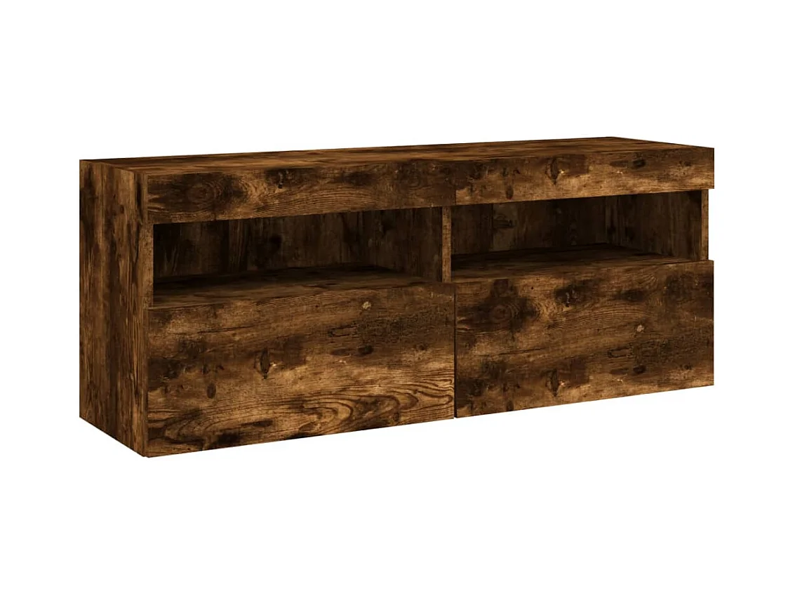 Meuble TV muraux 4 pcs avec lumières LED chêne fumé