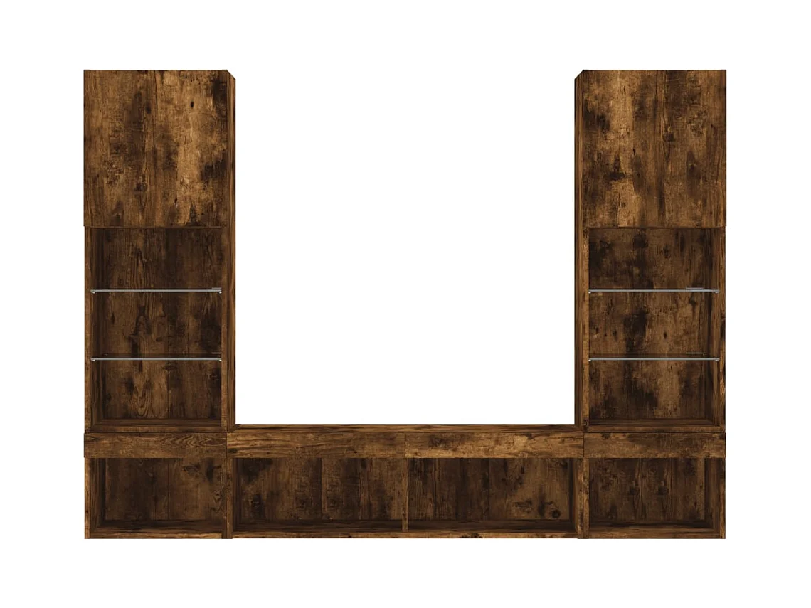 Unités murales TV avec LED 5 pcs chêne fumé bois d'ingénierie
