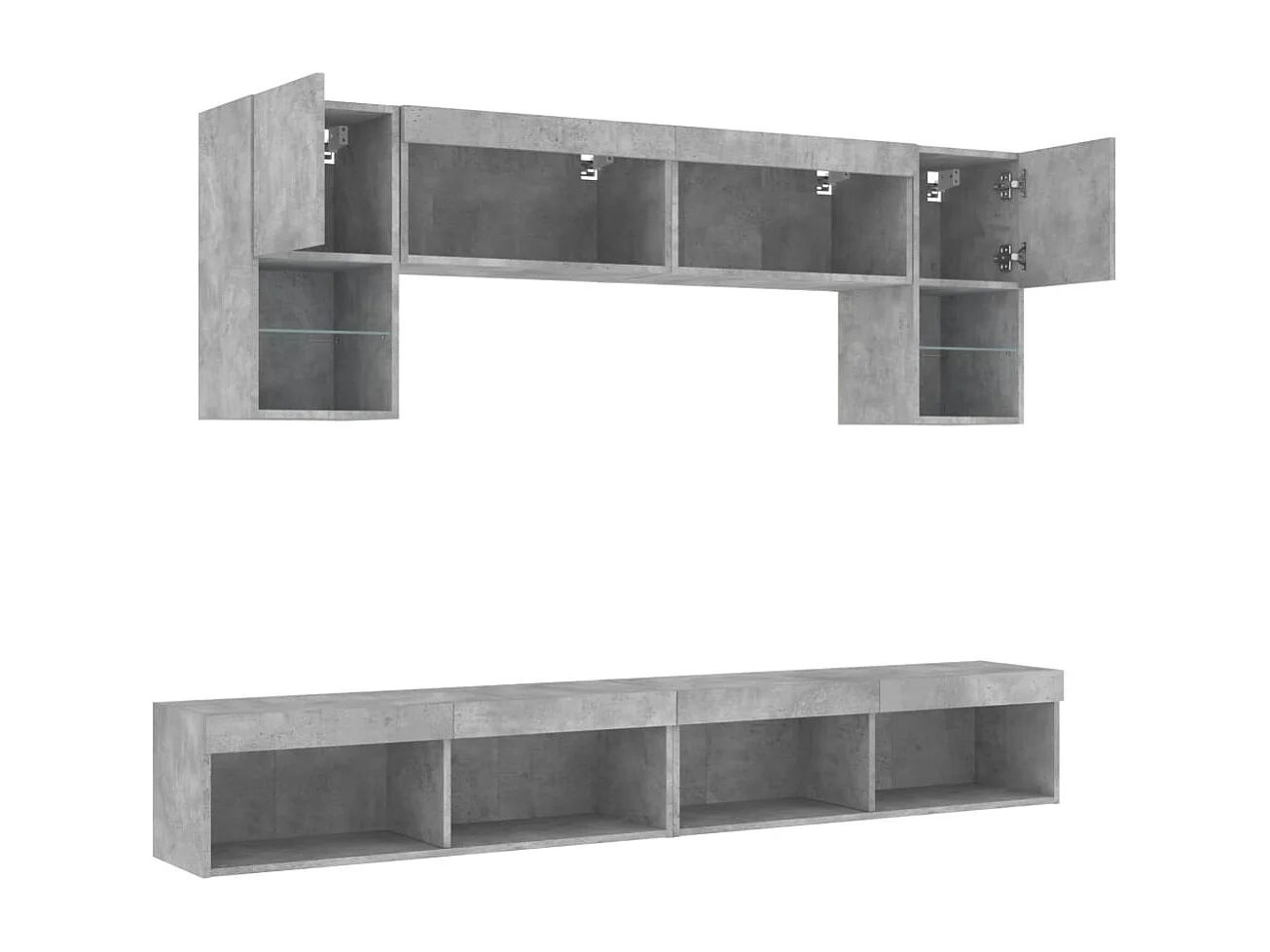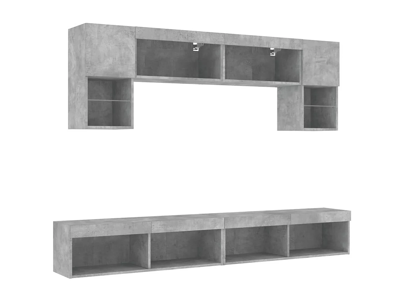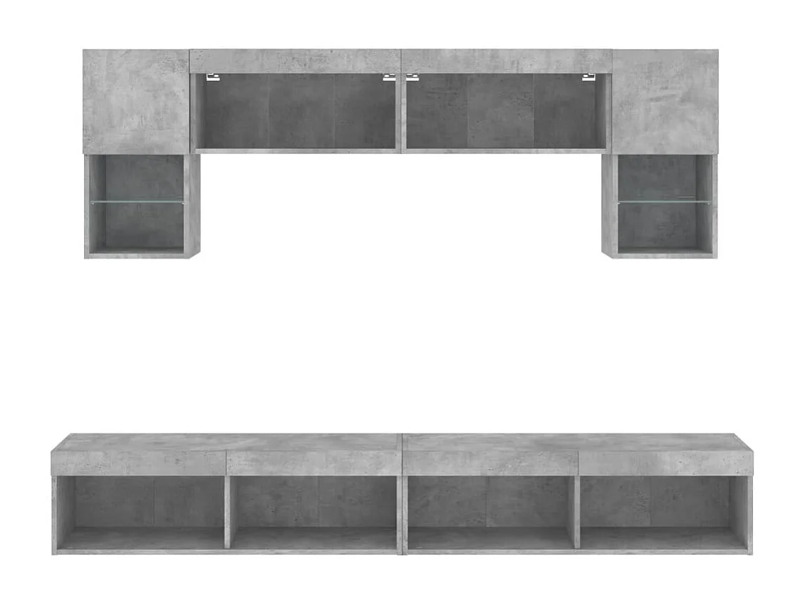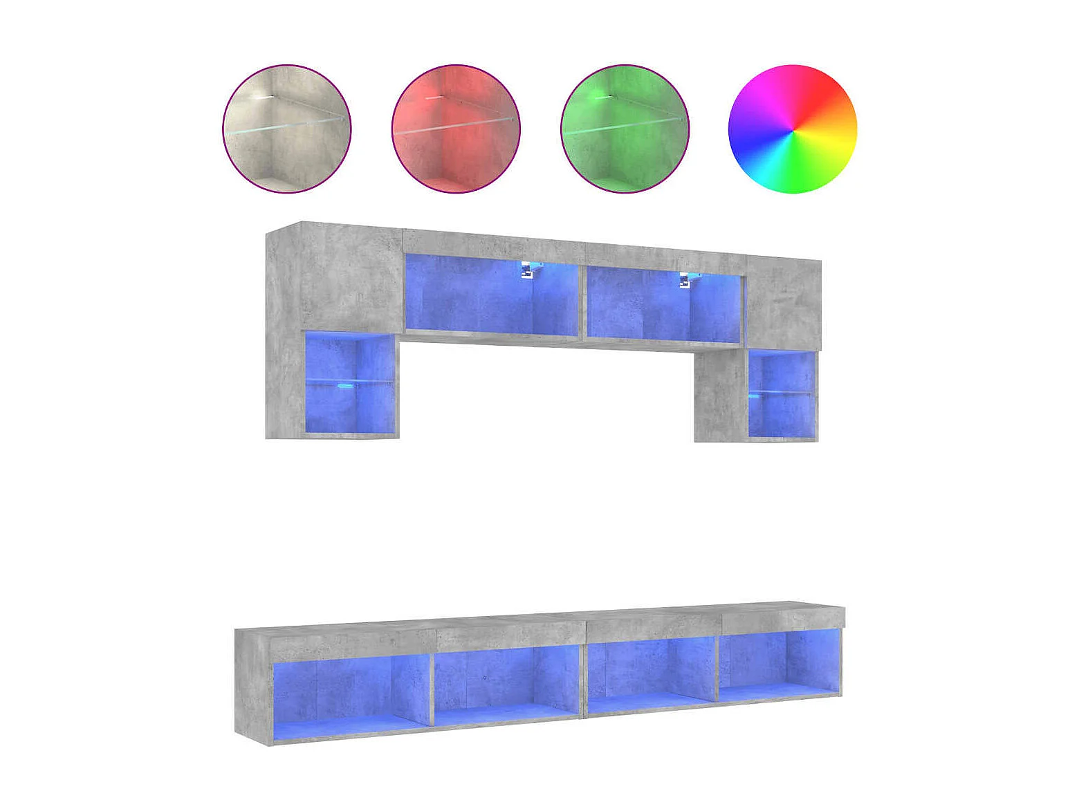 Unités murales TV avec LED 6 pièces gris béton bois d'ingénierie