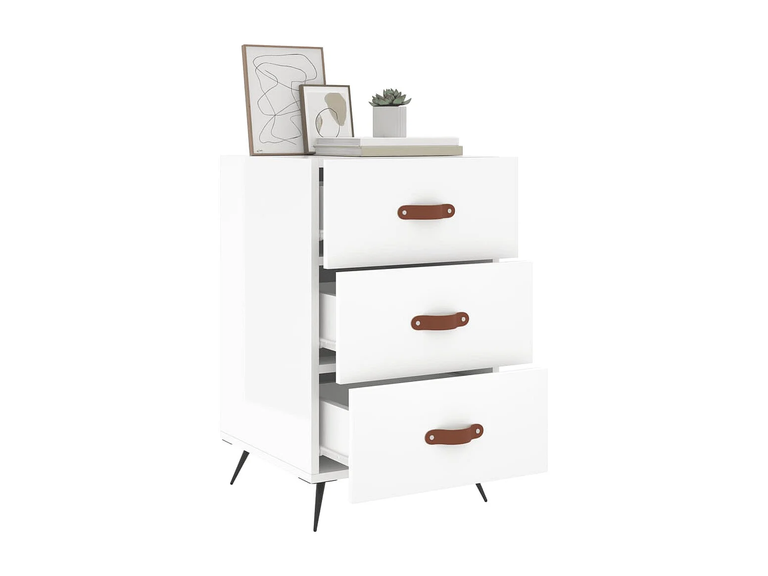Yvella Table de chevet blanc brillant 40x35x47,5 cm bois d’ingénierie