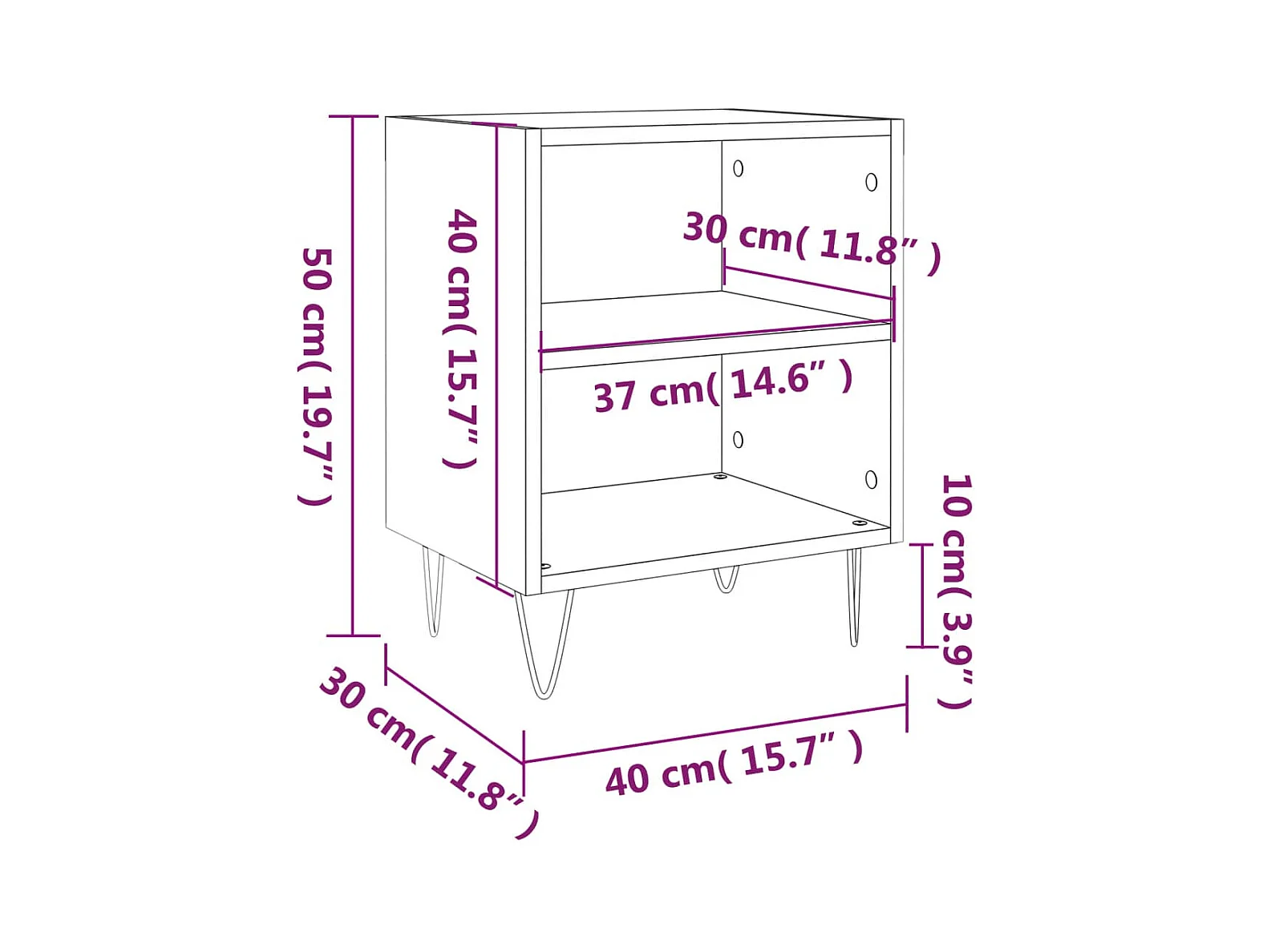 Sulva Tables de chevet 2 pcs noir 40x40x50 cm bois d’ingénierie