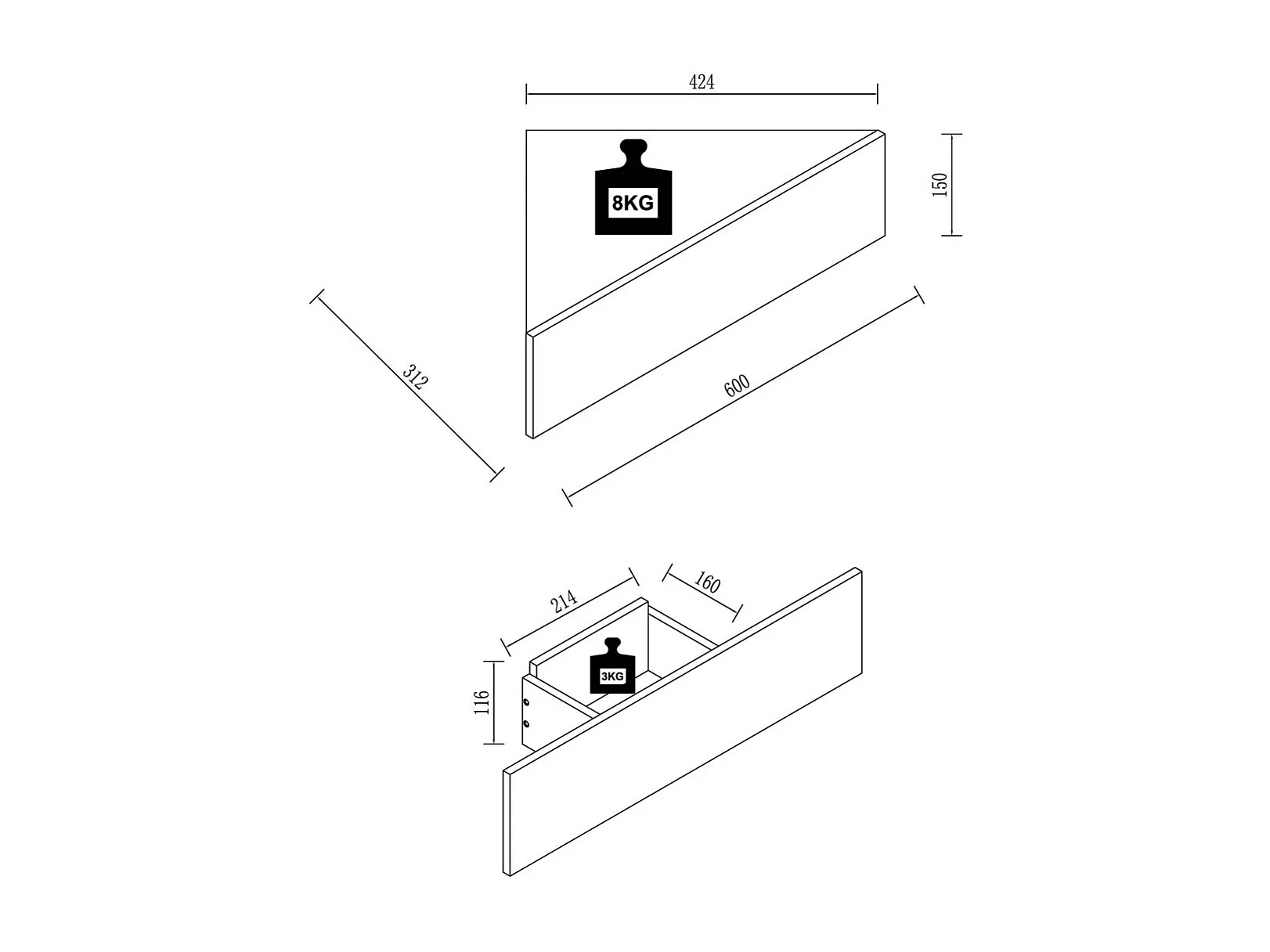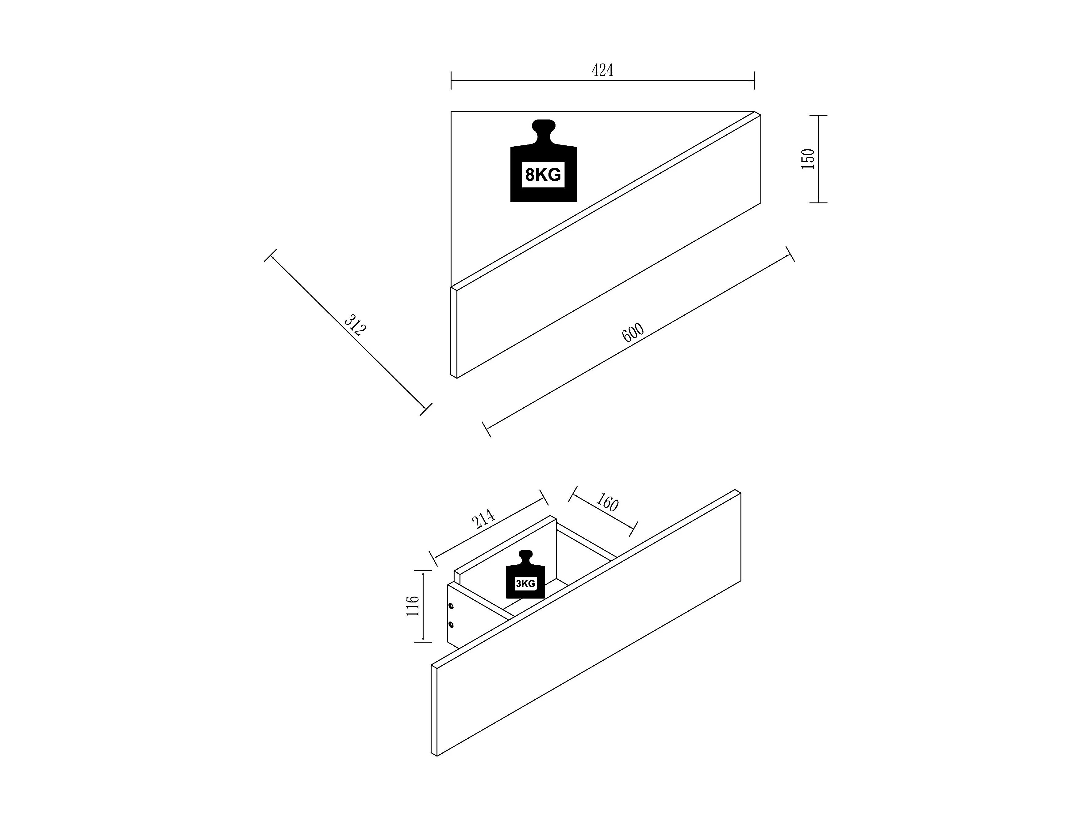 bedside table Usal White / Honey oak H. 15 x W. 60 x D. 30 cm