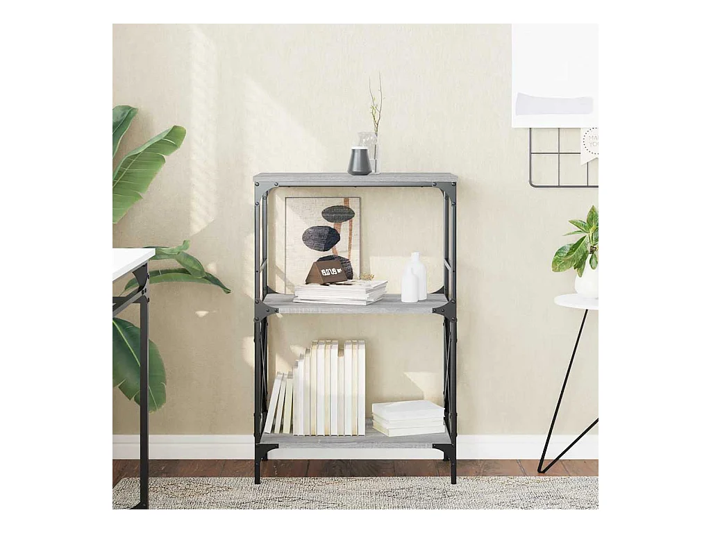 Uusikaupunki Bibliothèque à 3 niveaux sonoma gris 59x35x90,5 cm