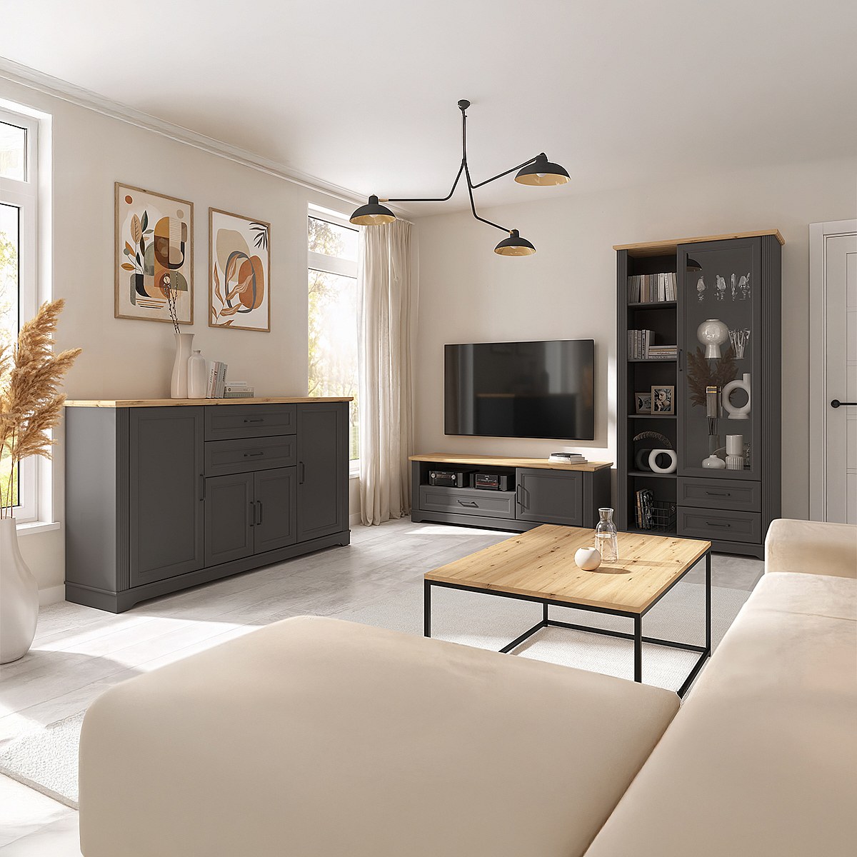 Vaisselier 1 porte 2 tiroirs Charlie Gris Anthracite